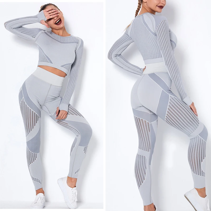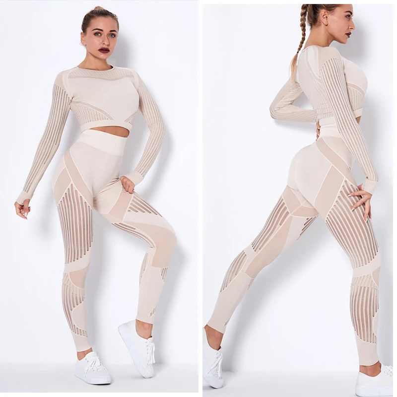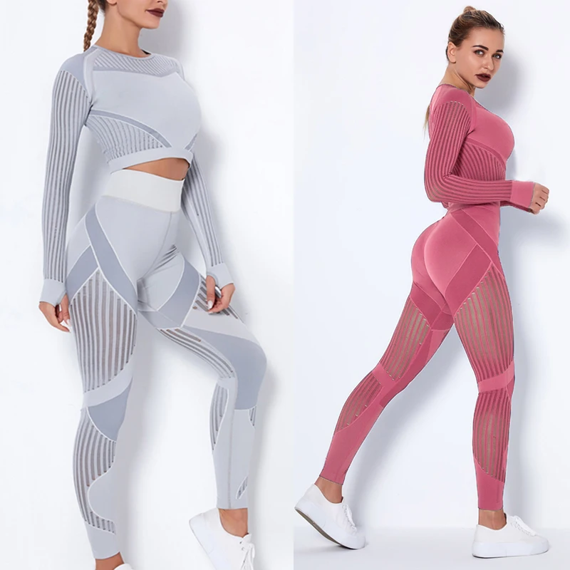 Женский спортивный костюм из 2 предметов, спортивный костюм, одежда для тренировок в тренажерном зале, леггинсы для фитнеса + рубашки, спортивный костюм, женская одежда для активного отдыха с длинным рукавом