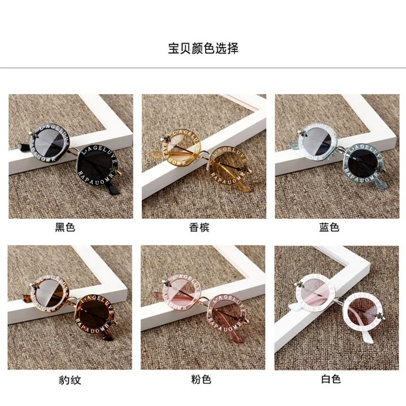Новые Индивидуальные детские солнцезащитные очки в круглой оправе с буквами детские солнцезащитные ретро-очки с широкими полями уличные пляжные солнцезащитные очки с защитой от ультрафиолета