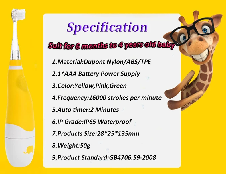 2. Сменная головка щетки, головка щетки зубной щетки ребенка должна быть изменена каждые 3 месяца.