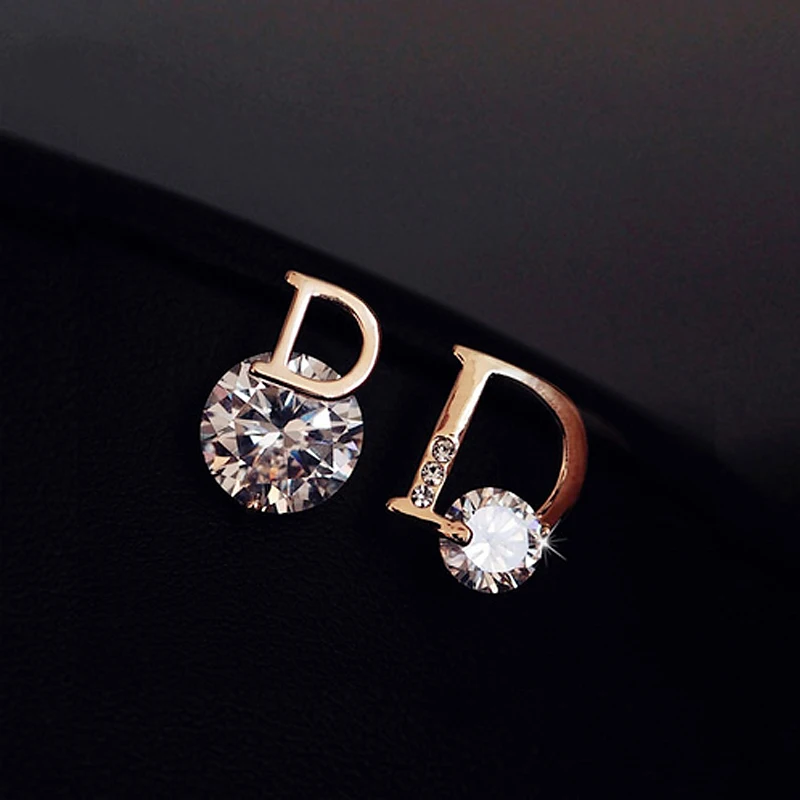 CAOSHI элегантная буква D-образный асимметричные серьги-гвоздики с блестящими круглыми фианитами, Индивидуальные женские Украшения, Лидер продаж