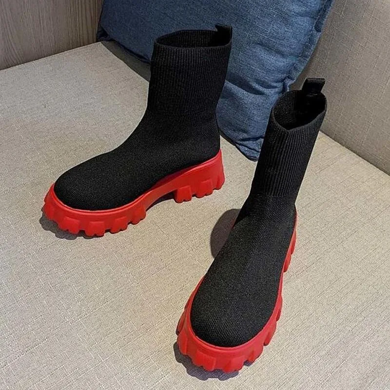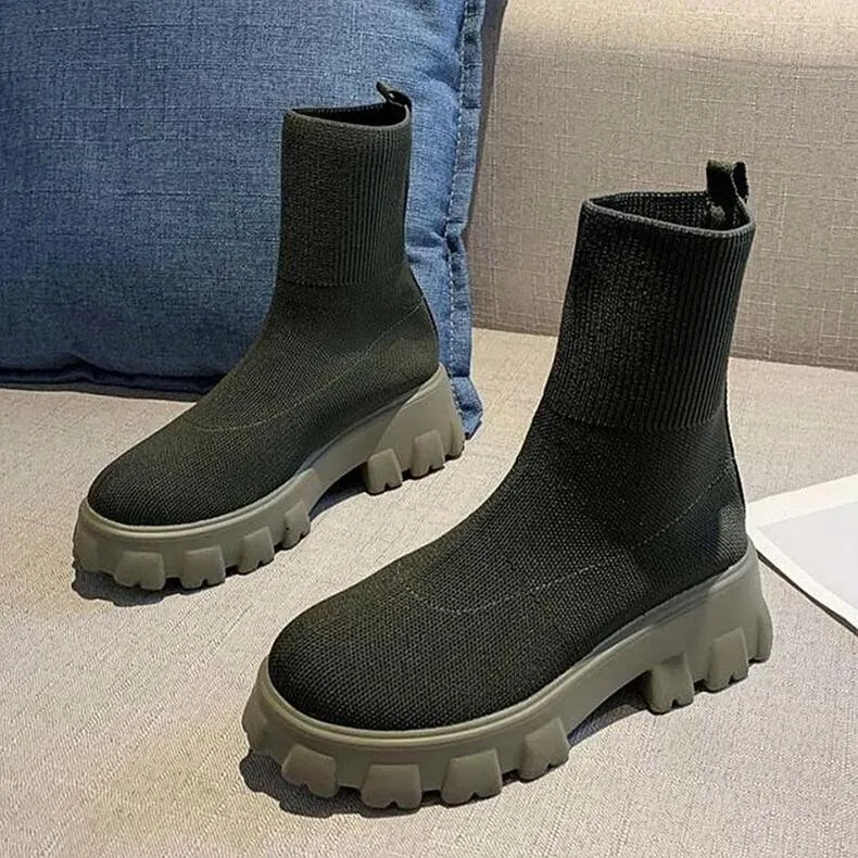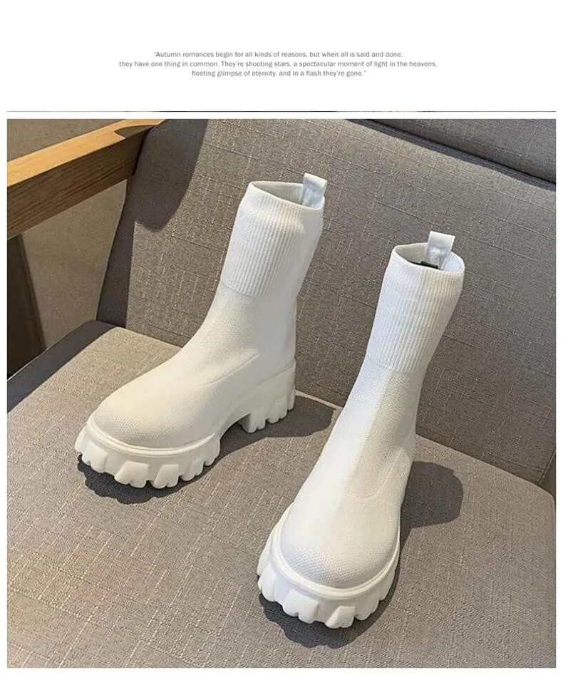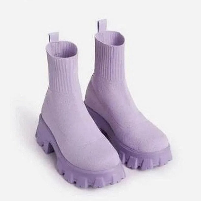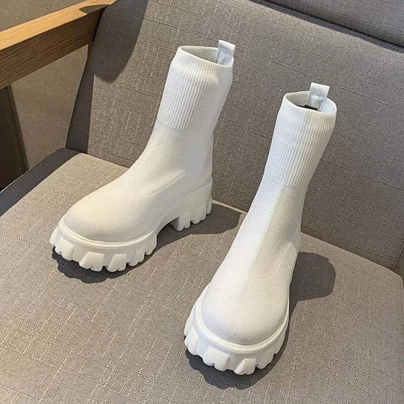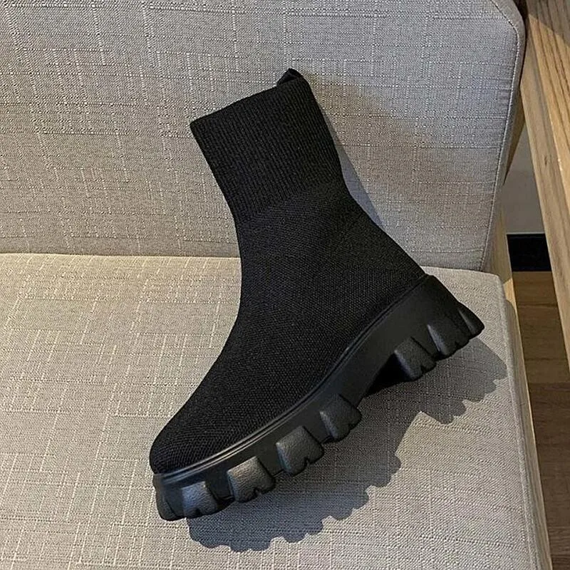 Ботильоны-стрейч, дизайнерские зимние ботинки на массивной платформ...