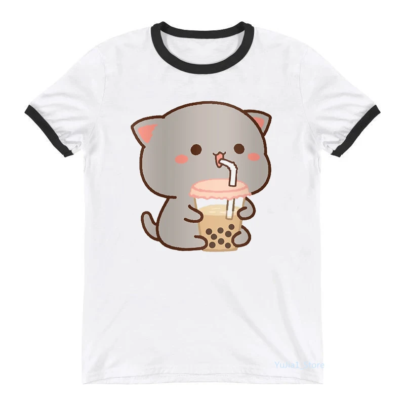 Лидер продаж 2021, футболки с мультяшным принтом персика и Гомы мочи, женская одежда, белая футболка Kawaii Boba, женские летние топы, футболка
