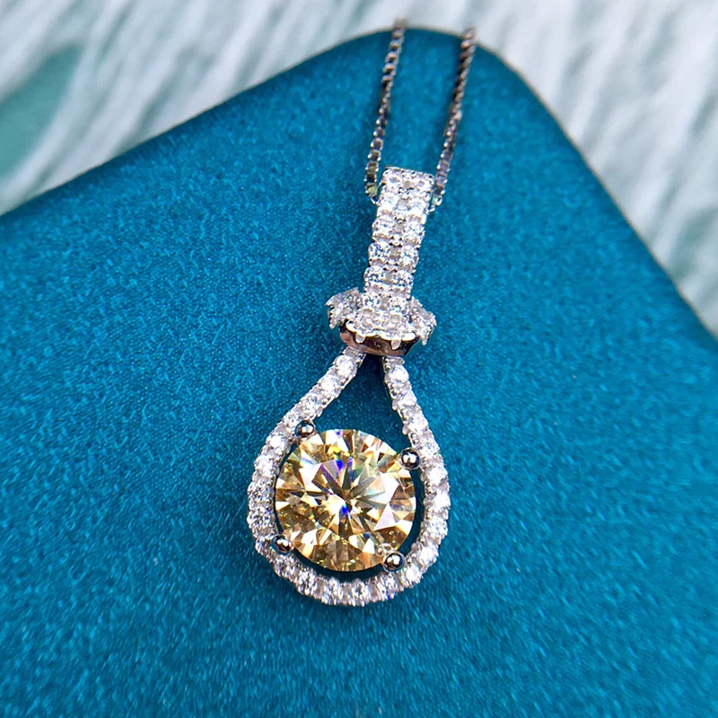 Ожерелье драгоценный камень: 1CT 6,5 мм желтый моиссанит (прошел бурение тест + GRA сертификат)
