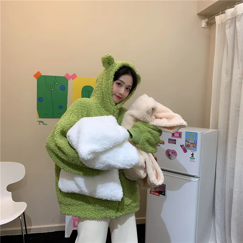 Осень-зима 2021, толстовка с капюшоном в виде лягушки, на молнии, п...