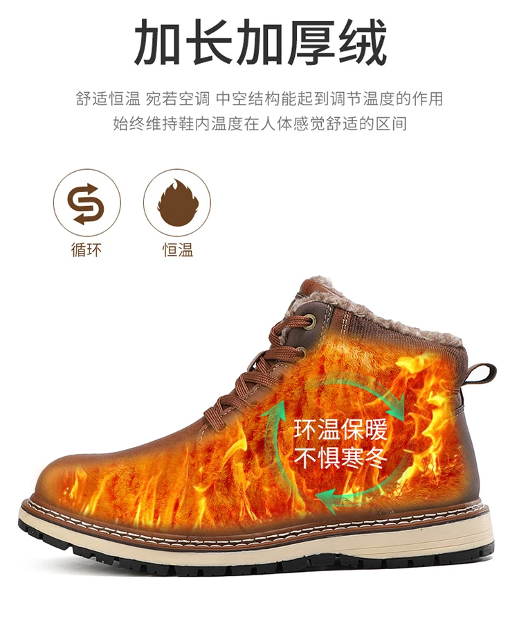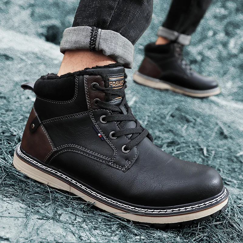 Мужские осенние повседневные ботинки, удобные нескользящие ботинки, мужские кожаные ботинки с хлопковым утеплителем, уличные бархатные кроссовки