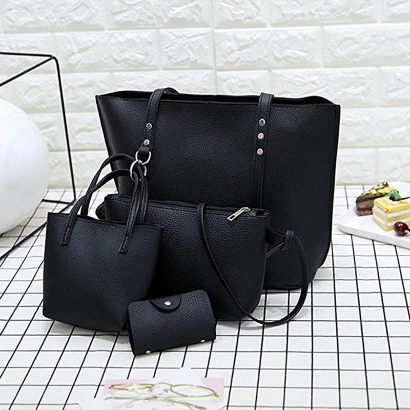 Роскошный бренд 4 шт/комплект, женские сумки, Большая вместительная женская сумка, женская кожаная сумка, модные сумки на плечо для женщин, 2021 кошелекМатериал: из искусственной кожиРазмеры 1: 33*14*30 см (1 дюйм = 2,54 см; 1 см = 0,39 дюйма)
