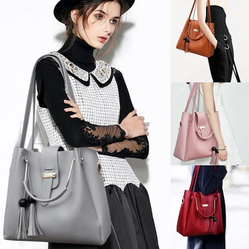 Кожаная сумка-мессенджер через плечо для женщин, тоут, мешок 3 шт.компл. Женская композитная сумка, комплект дамской сумочки
