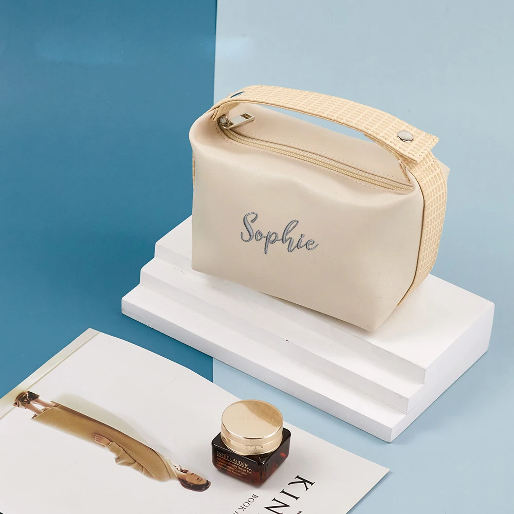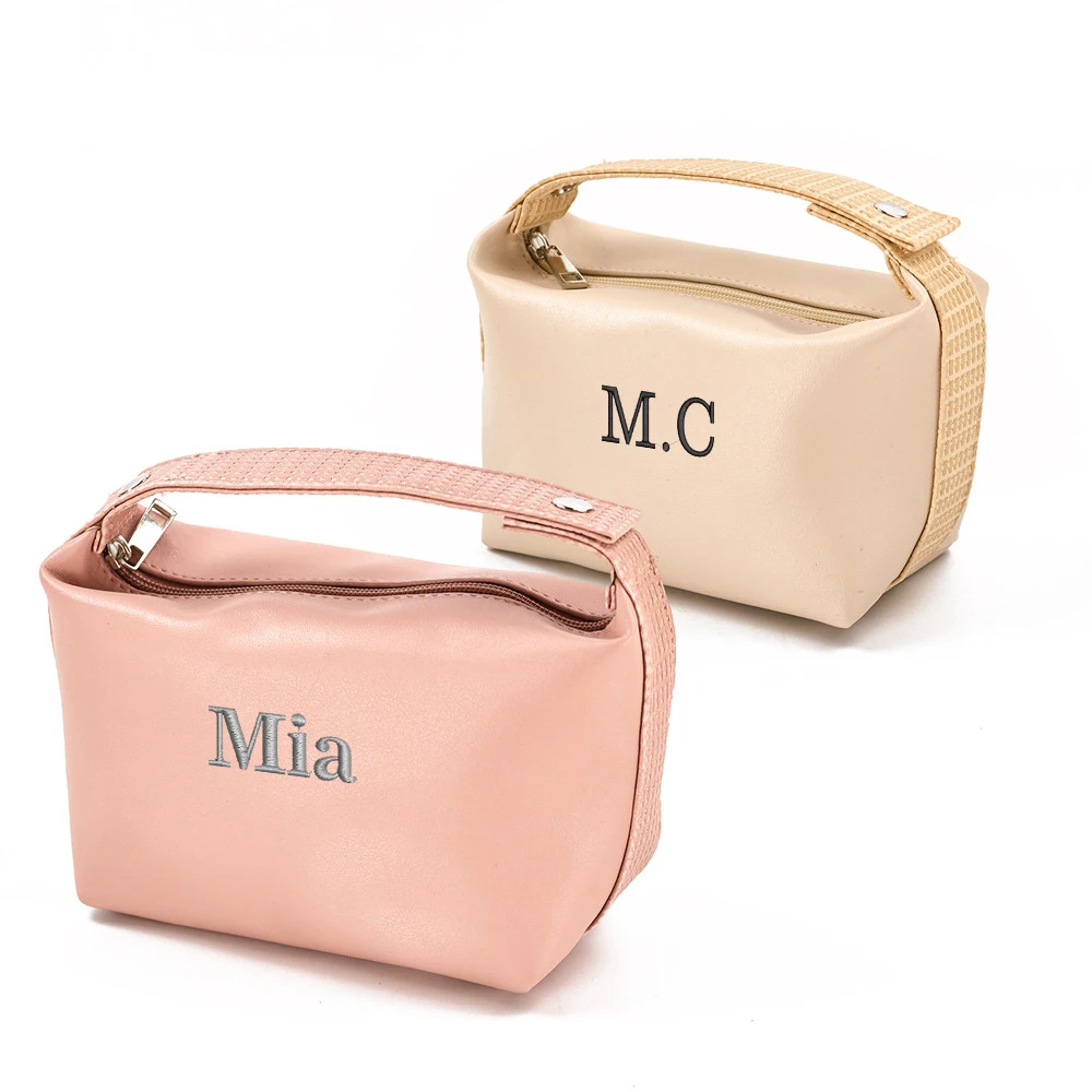 Портативные сумки для туалетных принадлежностей из искусственной кожи с персонализированной вышивкой, женский водонепроницаемый комплект для макияжа, подарок на заказ для подружек невесты