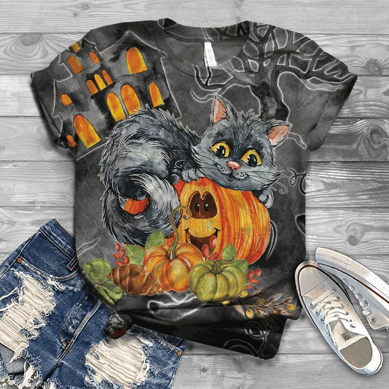 Женская Повседневная летняя модная футболка на заказ, футболки с 3D принтом на Хэллоуин, удобные уличные рубашки, топ, Прямая поставка