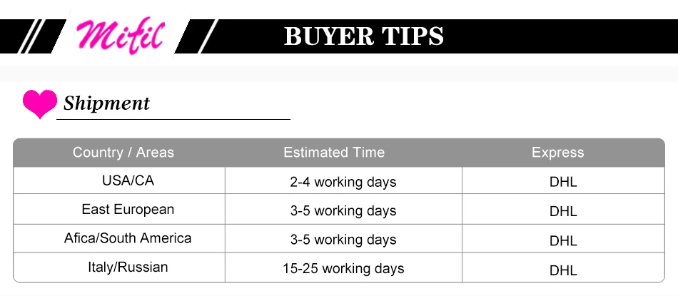 Shipping Time ( order >= 4 bundles)3 to 5 Workdays delivery