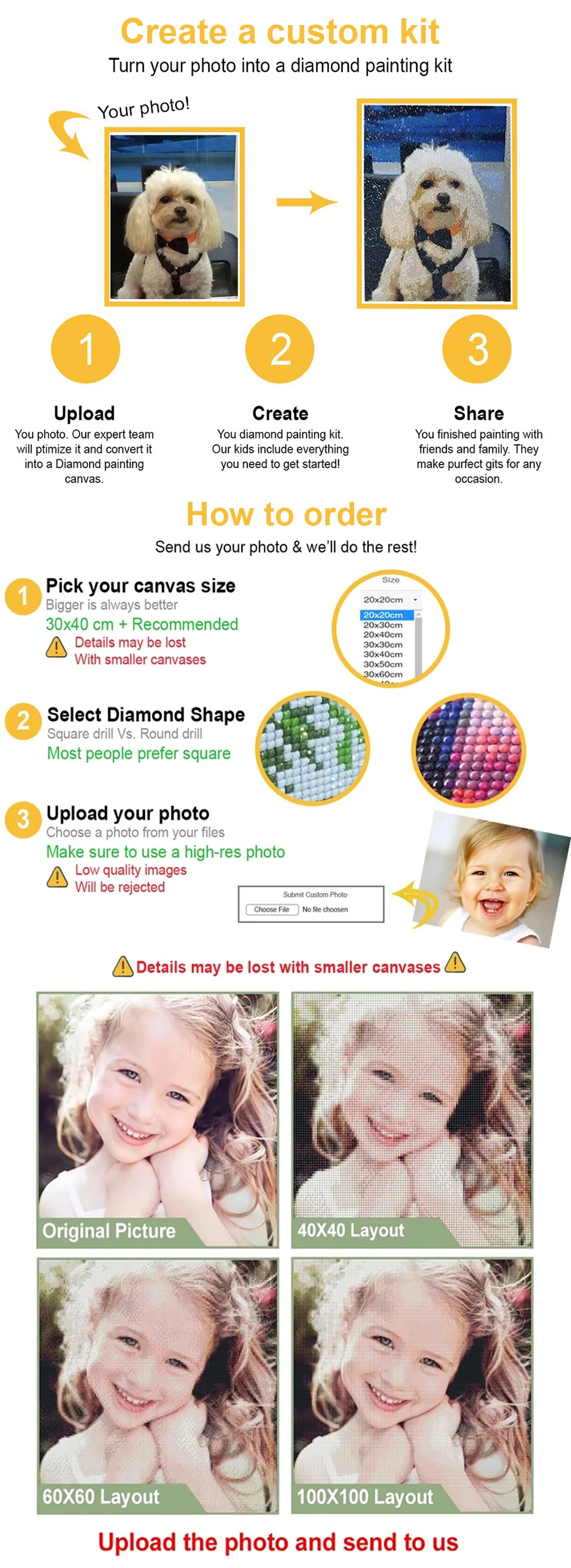 Фото на заказ! Алмазная вышивка 5D сделай сам с квадратнымикруглыми...
