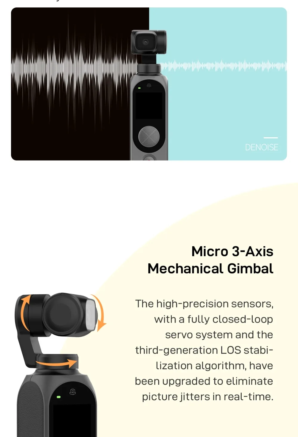 FIMI ладони 2 3-осевой портативный монопод с шарнирным замком Камера стабилизатор Модернизированный 4K 100 Мбит/с 308 мин карманный мини смарт Камера широкоугольный умная трек