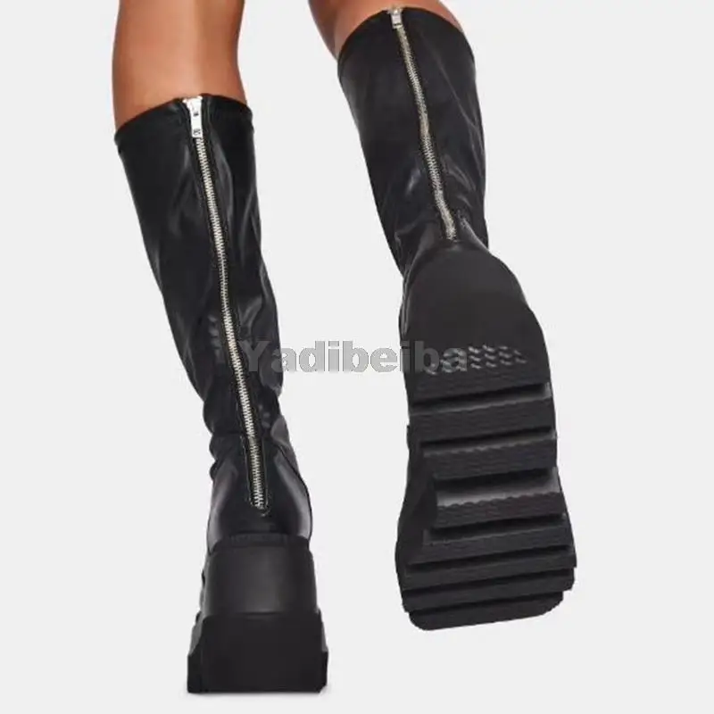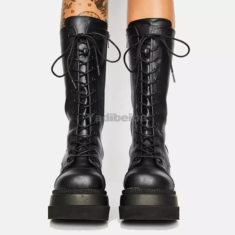 Роскошные Брендовые женские ботинки на платформе, женские ботинки на толстой подошве, сезон осень-зима, крутая обувь в стиле панк, женские высокие ботинки на массивной подошве, длинные ботинки