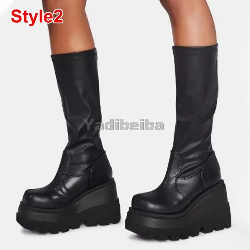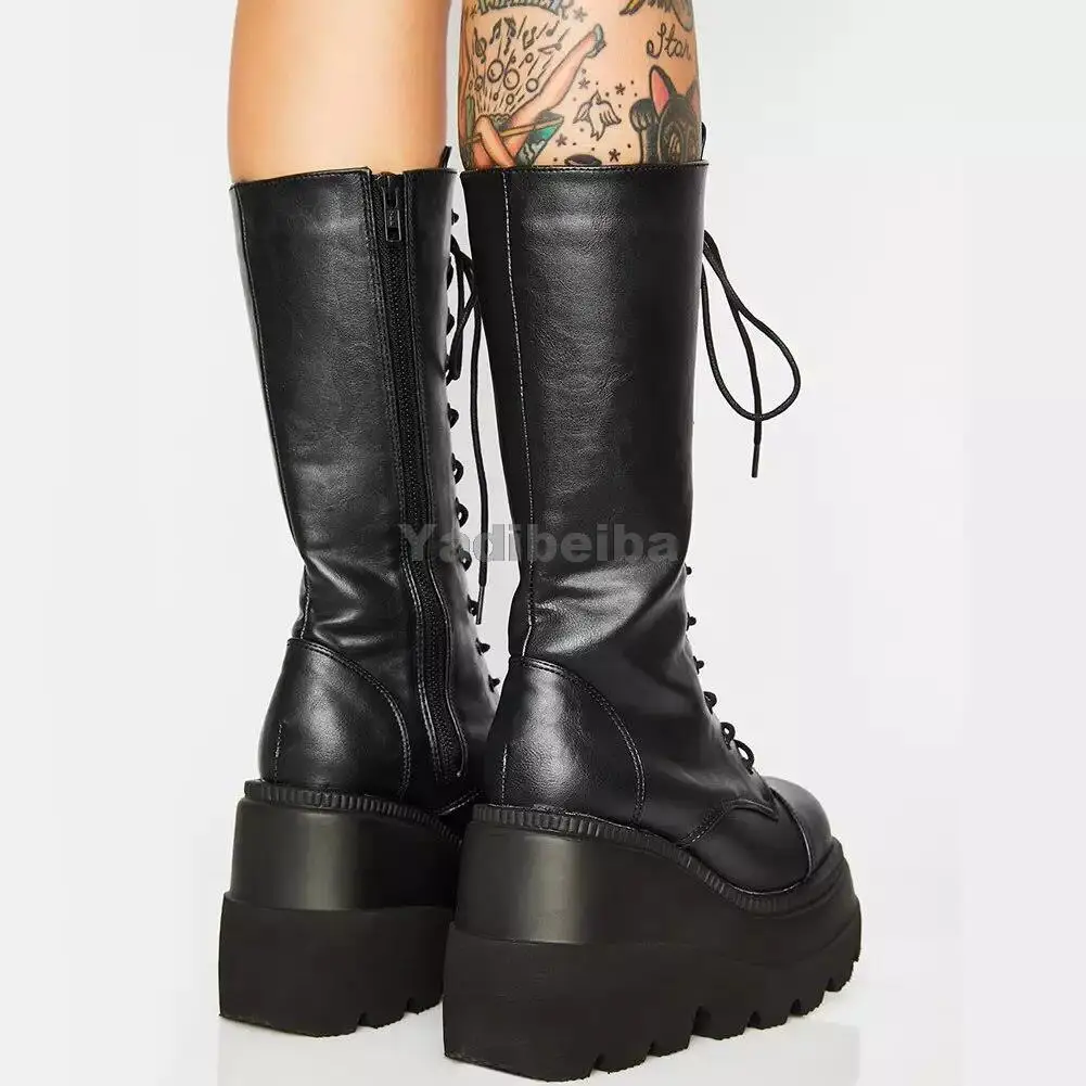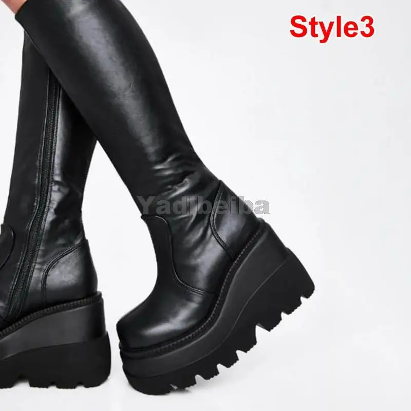 Женские ботинки на платформе, высокие ботинки на танкетке, в готиче...