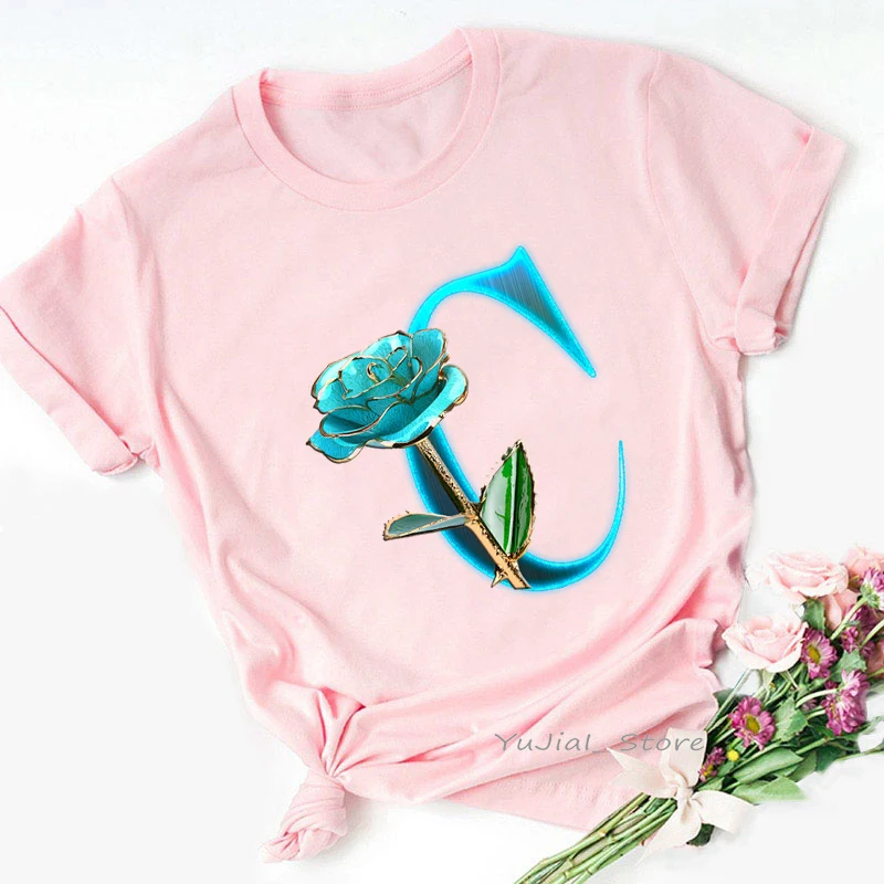 Женская футболка с принтом в виде букв алфавита, розовая футболка в стиле Харадзюку с надписью N, 26 цветов, лето 2021