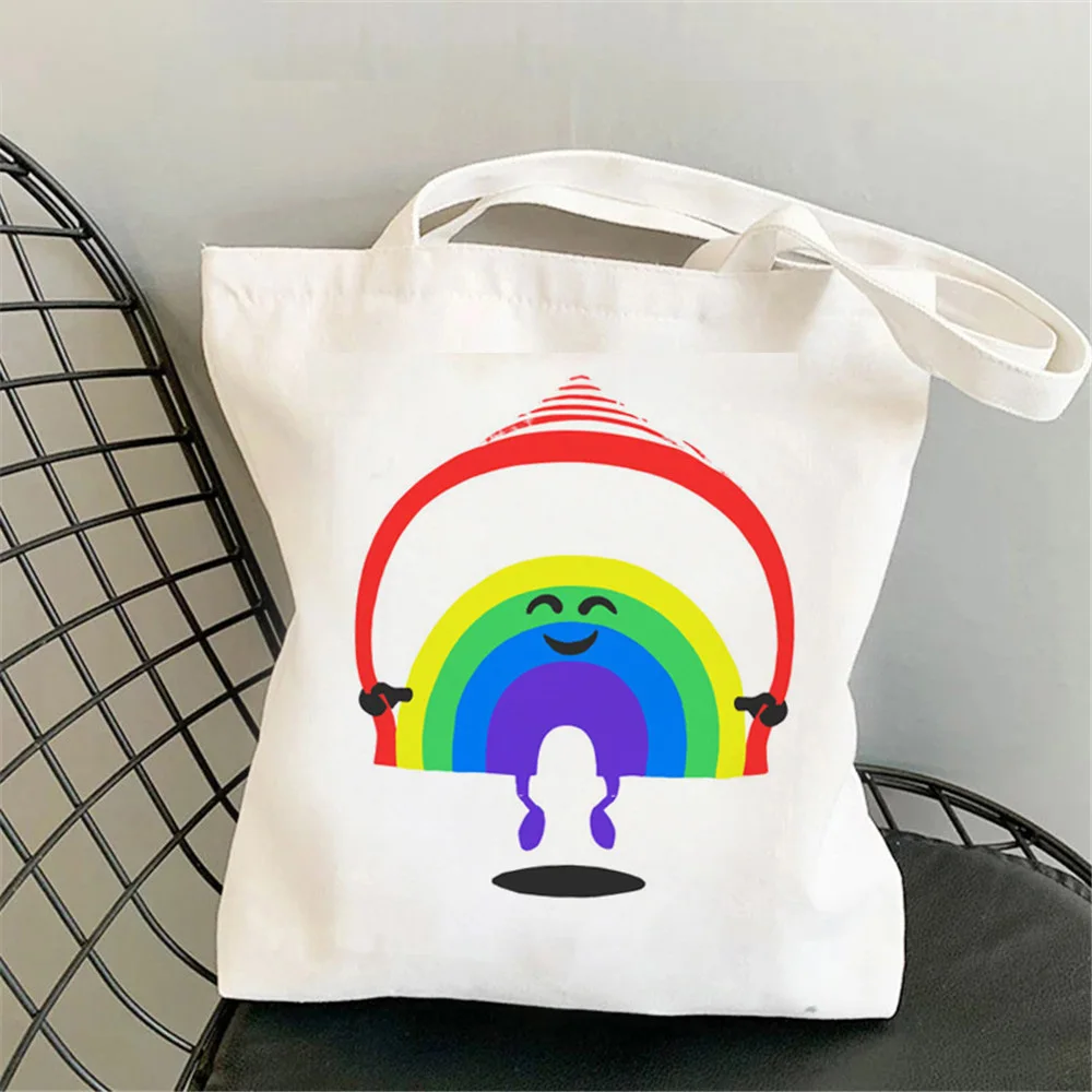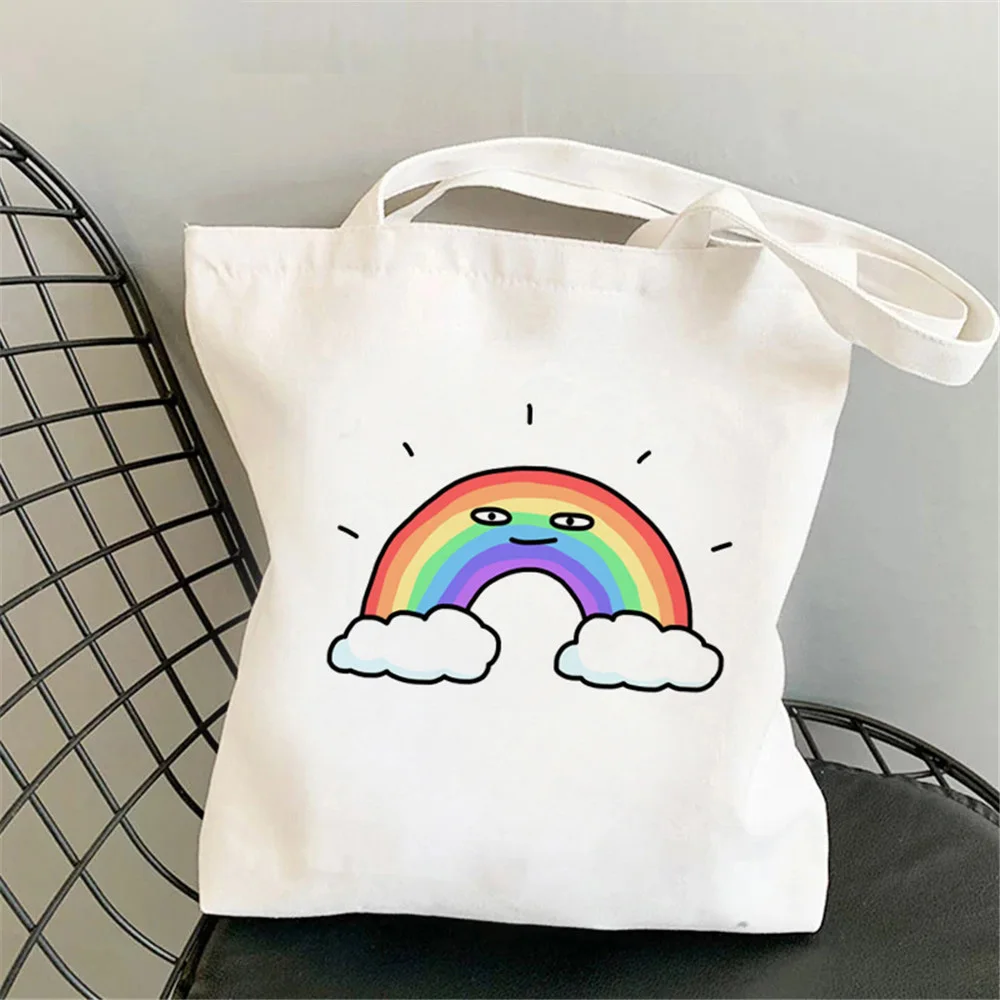 Милые радужные сумки для покупок, экологически чистая холщовая Джутовая сумка, многоразовая плетеная Сумка, забавные женские сумки на плечо, кавайные девушки