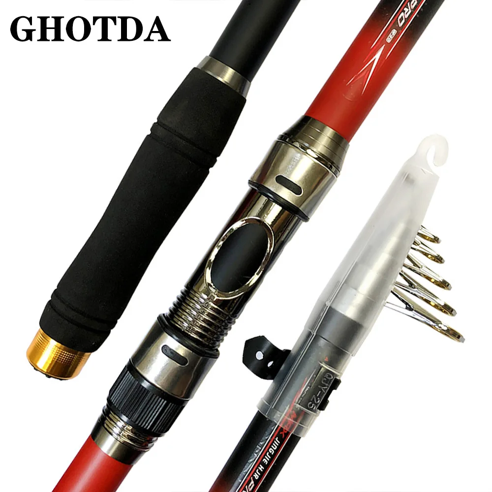 Супержесткая карбоновая удочка бренда GHOTDA для морской рыбалки, телескопическая удочка для путешествий 2,1-3,6 м