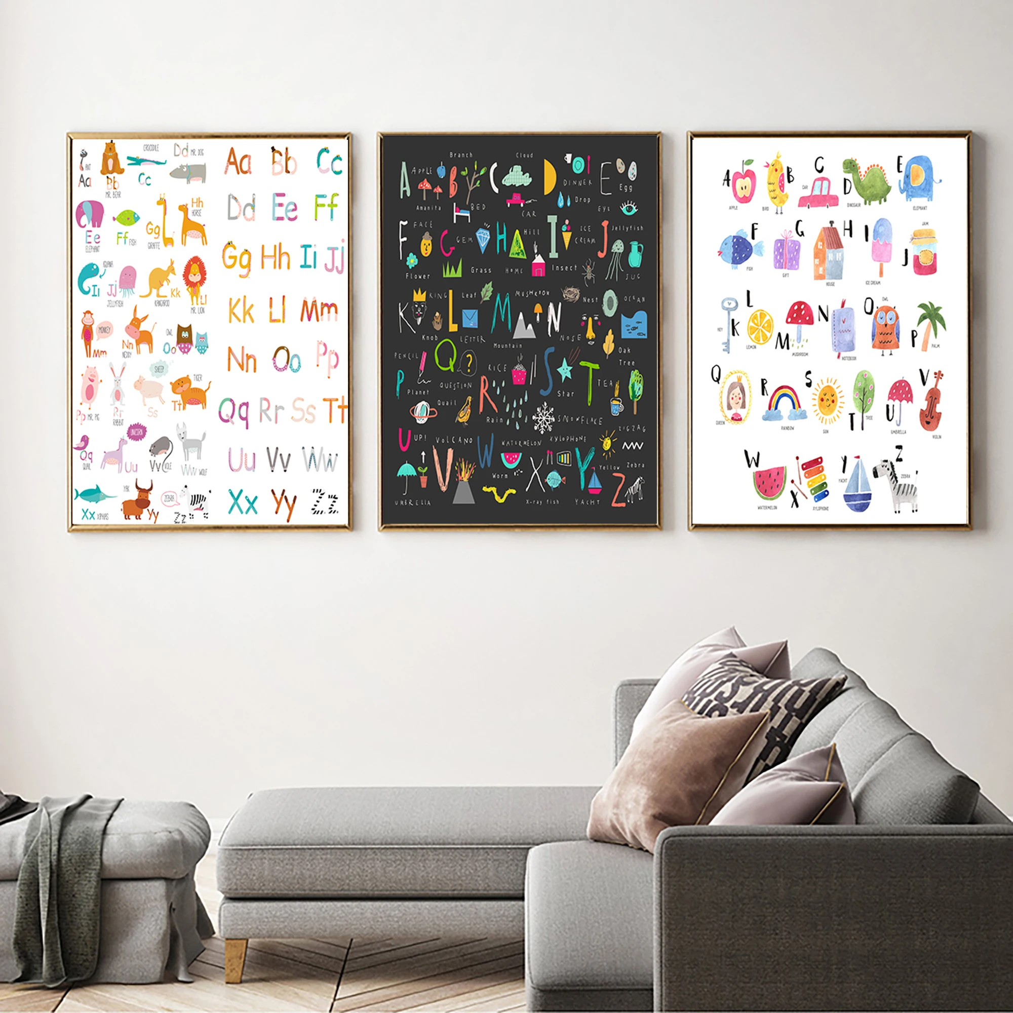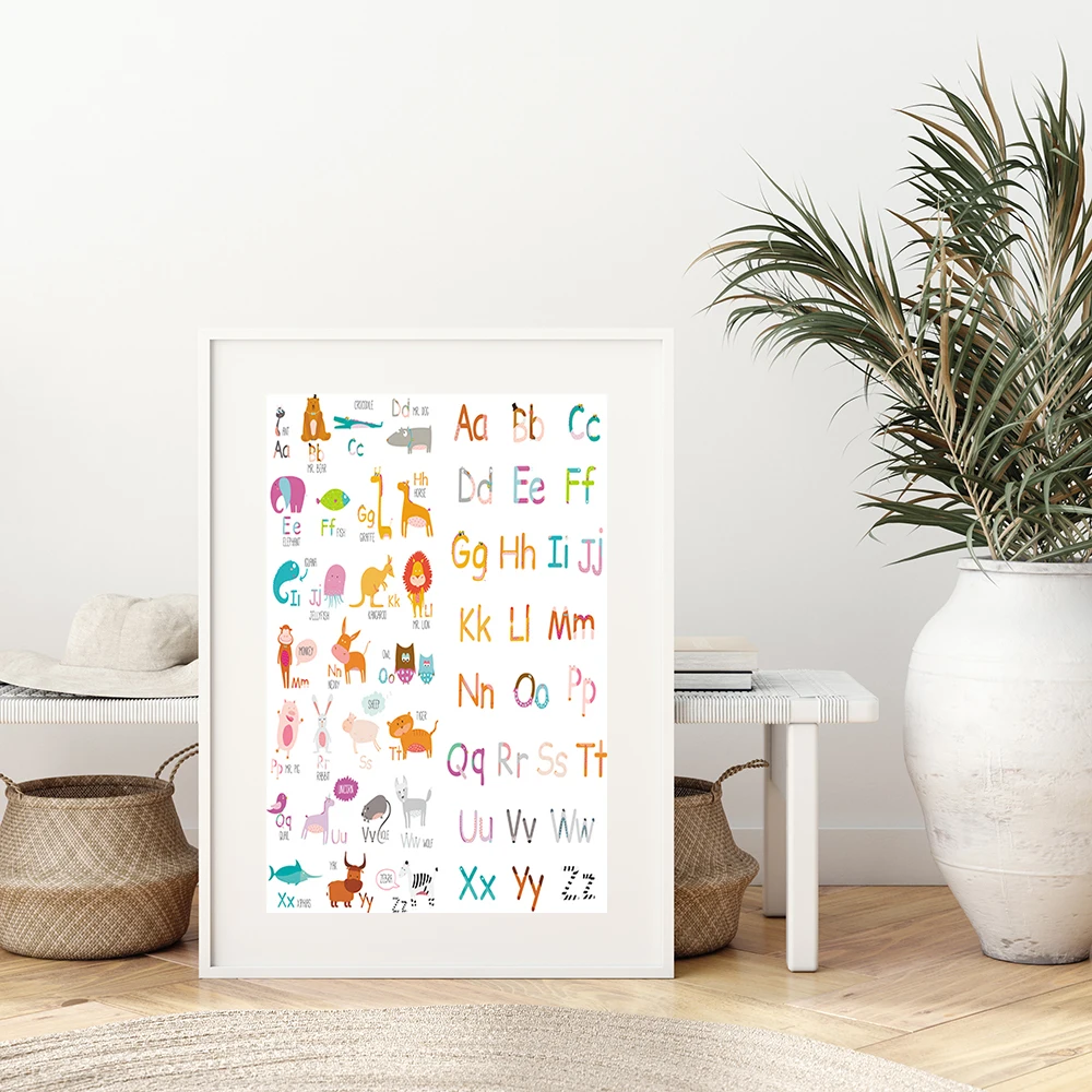 Животное плакат с алфавитом, образовательная АБС-буква, Картина на холсте, детский подарок, Настенная картина, картина для детской комнаты, декор для детской комнаты