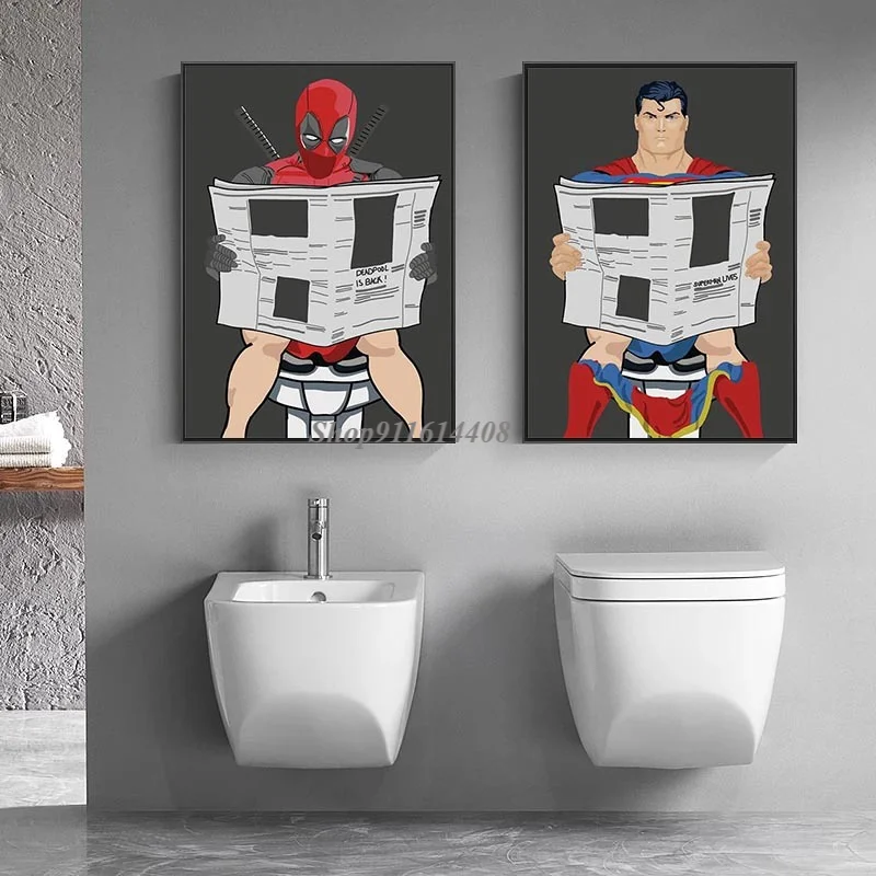 Классическая Картина на холсте Disney, Marvel, Дэдпул, аниме, Забавный постер, Человек-паук, Мстители, супергерой, туалет, настенный художественный принт, домашний декор