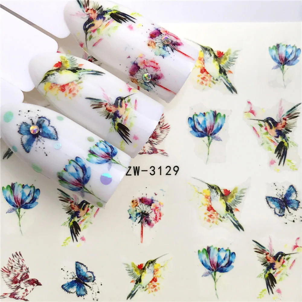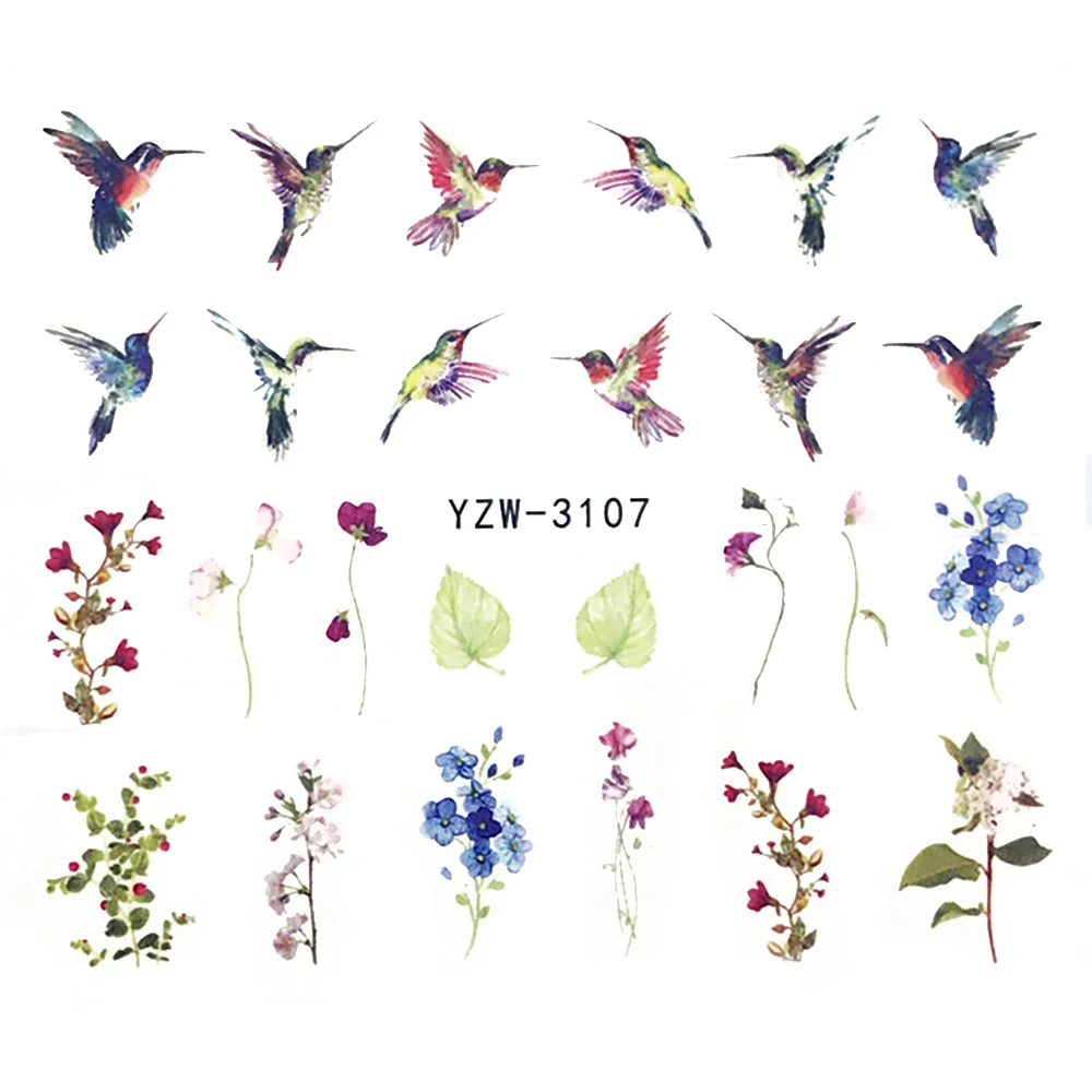 Наклейка для ногтей с животными, птицами, Волками, лисами, водная переводная наклейка для ногтевого дизайна, водная переводка с цветами, все для маникюра