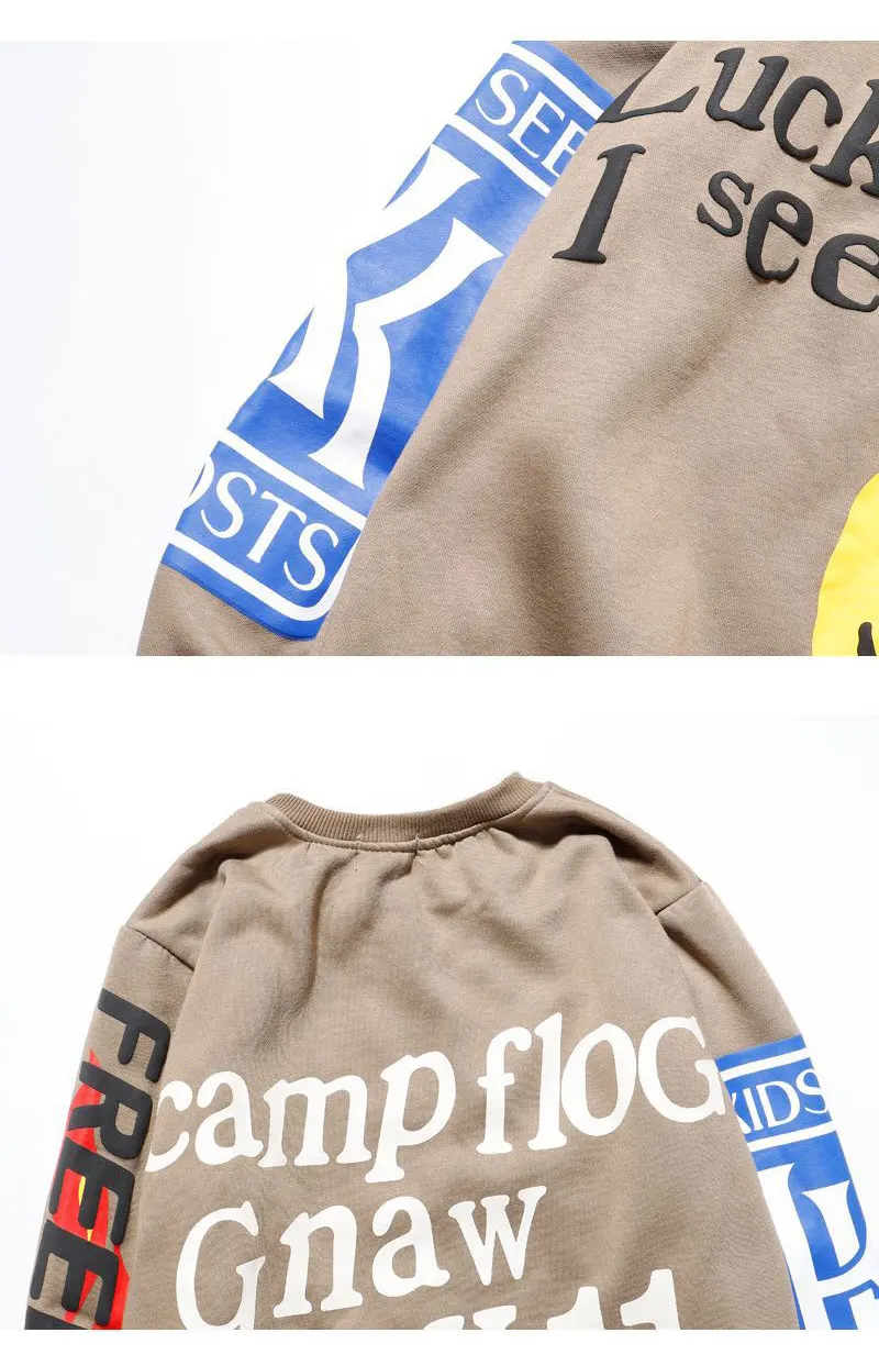 Толстовка Kanye West с принтом смайликов и круглым вырезом, для муж...