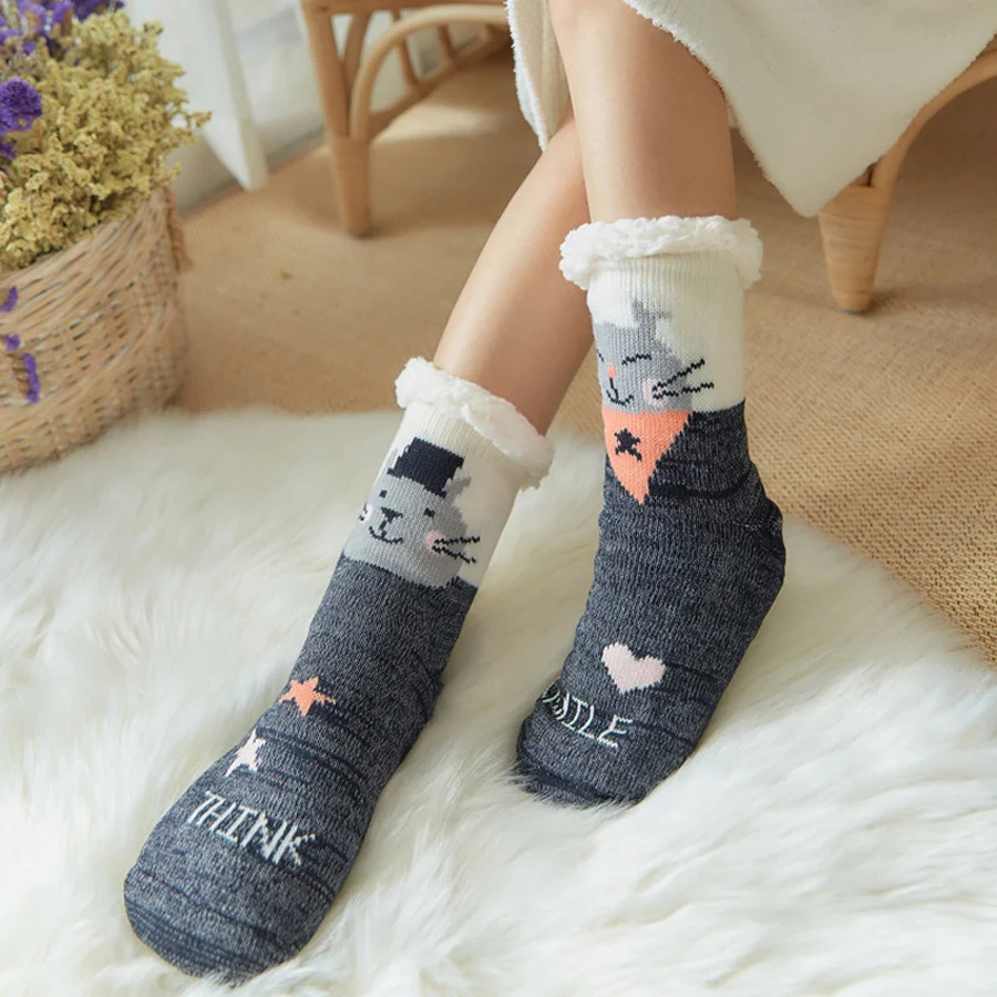 Номер моделиfluffy Thick socks home ladies cozy Cartoon elk cat new year 2022