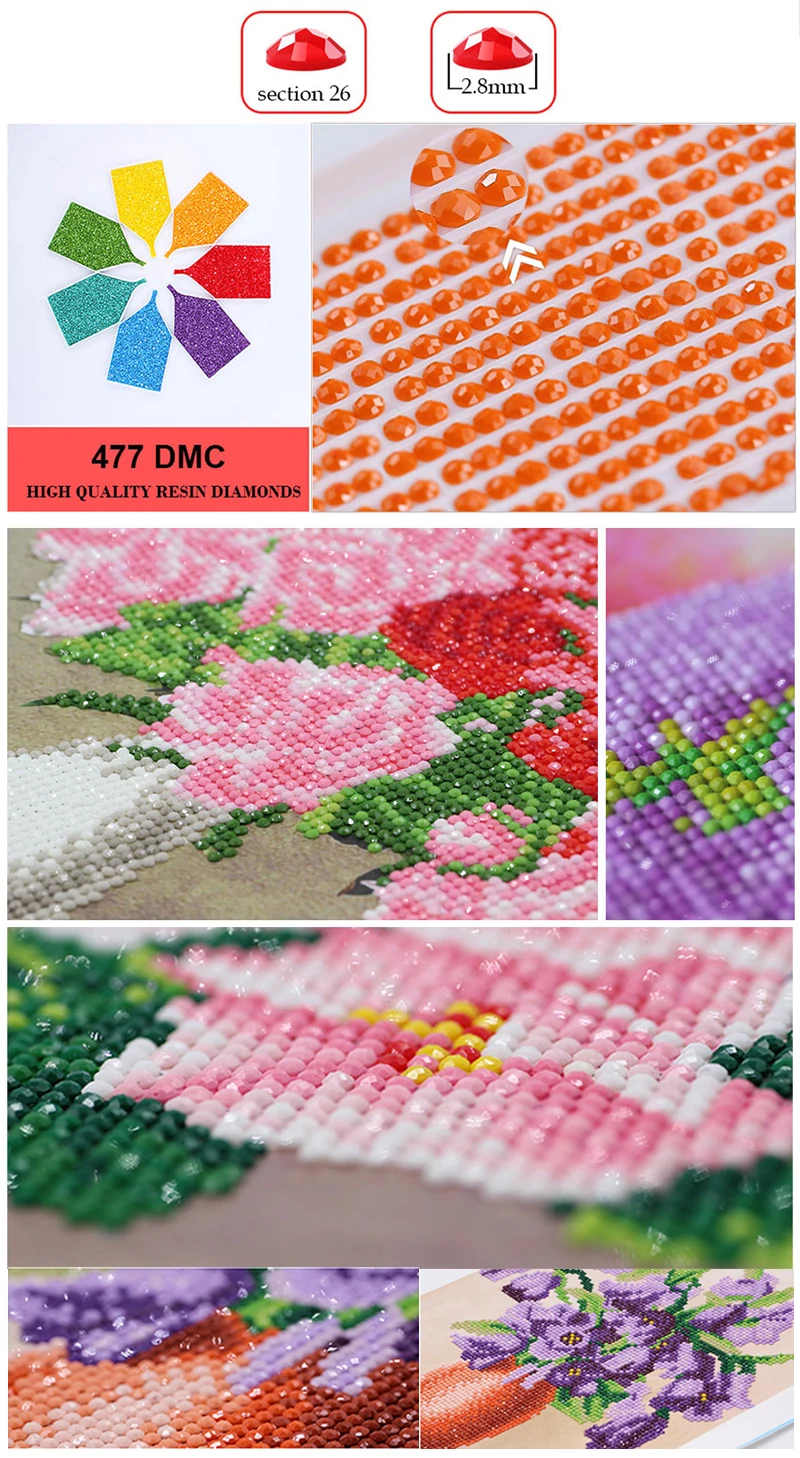 Алмазная мозаика сделай сам, картина с цветочным и строительным рис...