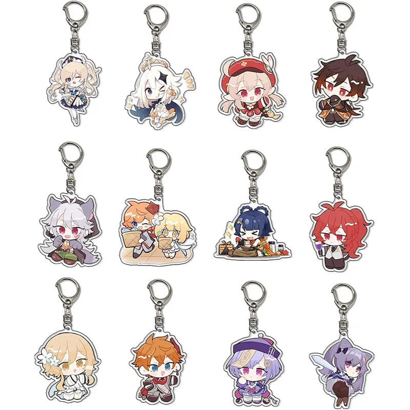 Аниме брелок GENSHIN IMPACT Klee QiQi Venti Paimon Аниме Косплей акриловый брелок сумка брелок Подвеска подарок для фанатов на день рождения
