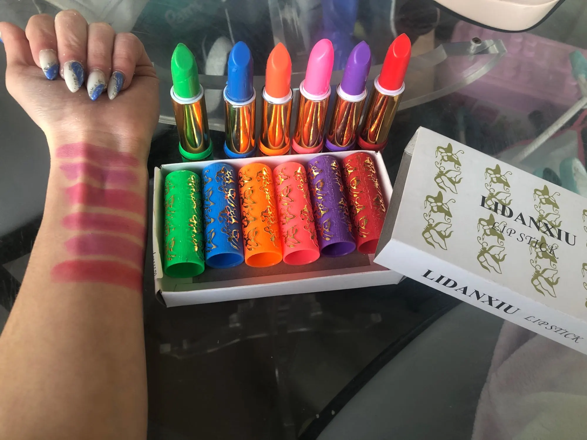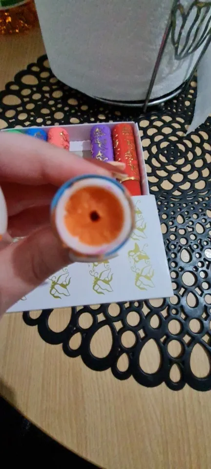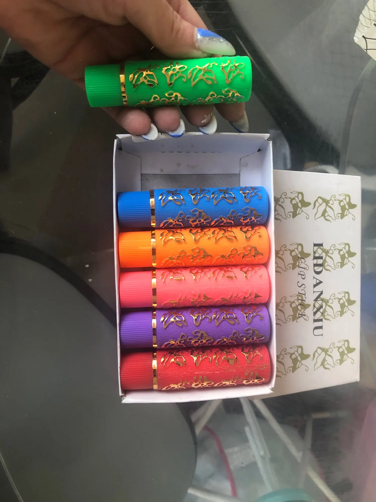 Посылка прибыла довольно быстро, но коробка и слегка повреждена. Что помада идет к одному, может повредить, даже немного окрашивать, как красный. Каждая помада имеет запах, который соответствует фрукту и очень красивую и хорошую пигментацию по этой цене, я рекомендую