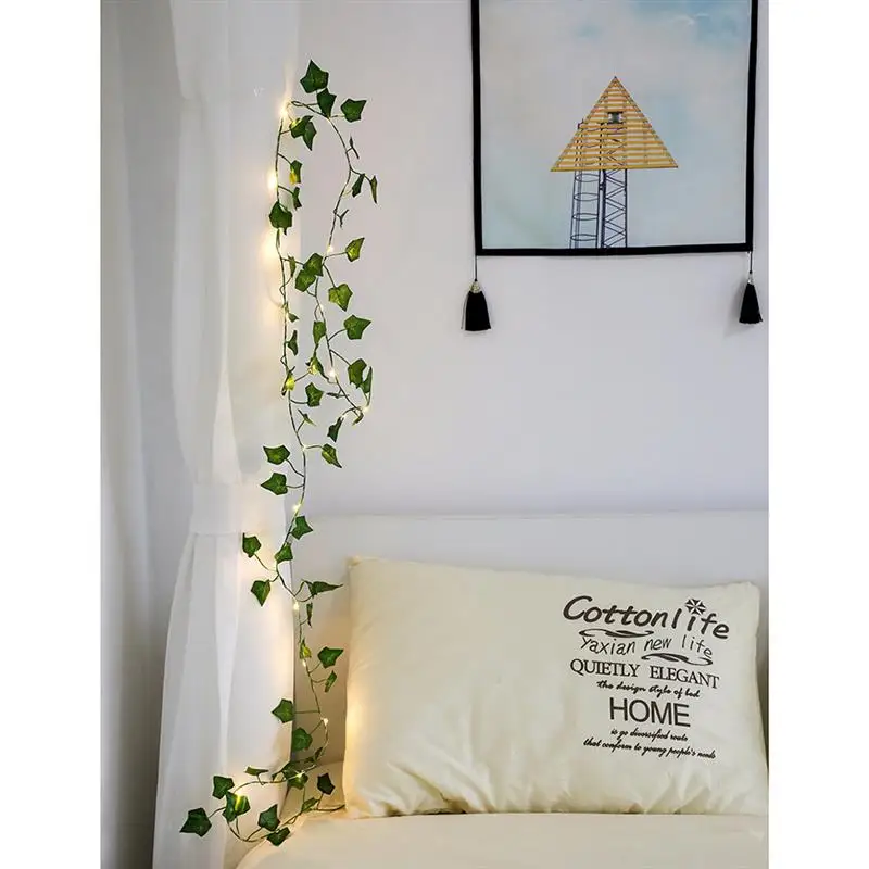Светодиодная гирсветильник да с искусственными растениями, поддельные зеленые кленовые листья, лоза с питанием от батарейки, сказосветильник лампа для украшения дома и свадьбы