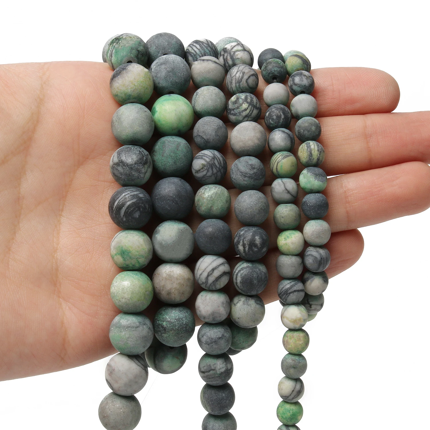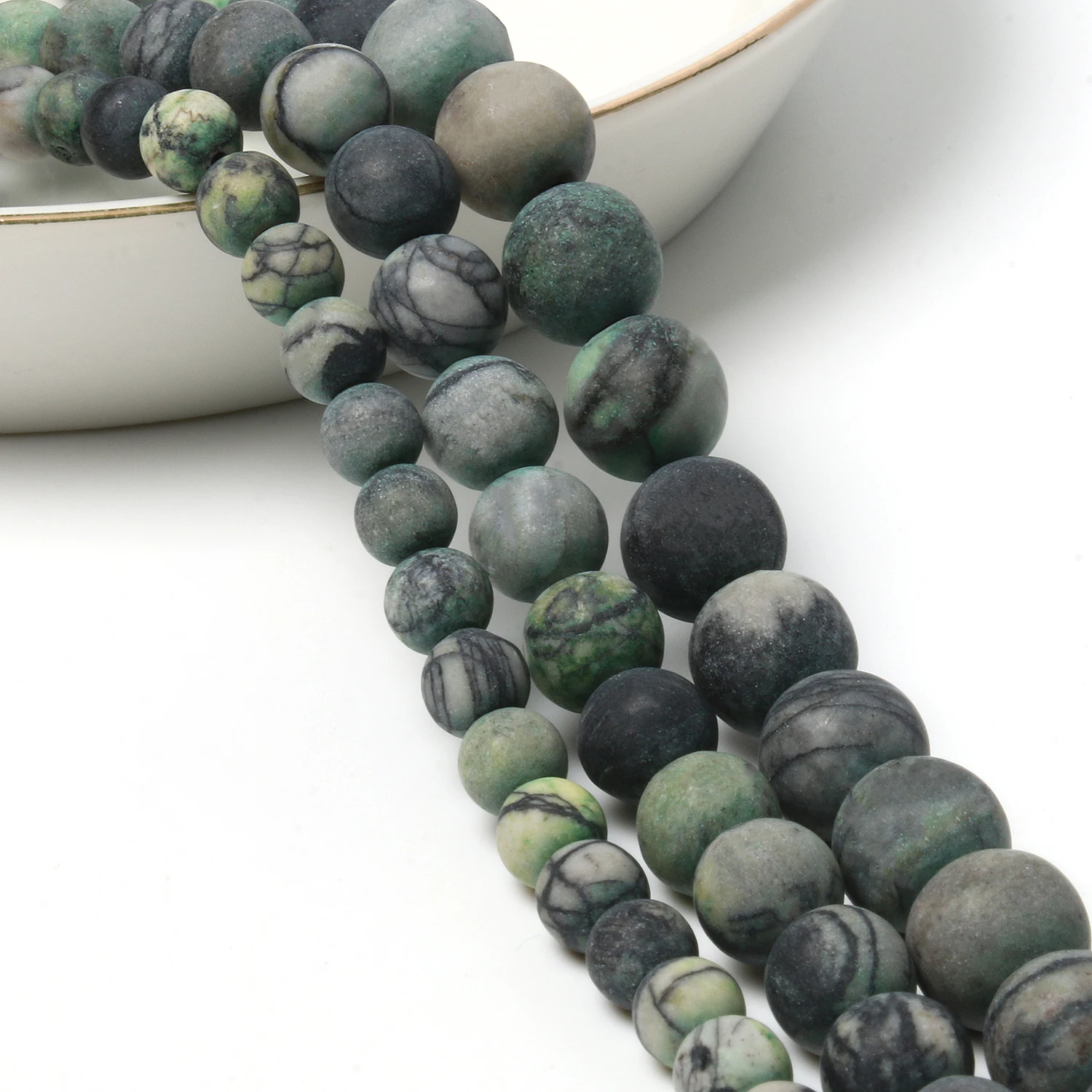 Название:Натуральный зеленый Паутинный яшма бусины для изготовления ювелирных изделий 6 8 10 мм матовые Свободные Круглые бусины Сделай Сам ручной работы браслет ожерелье 15 дюймов Perles