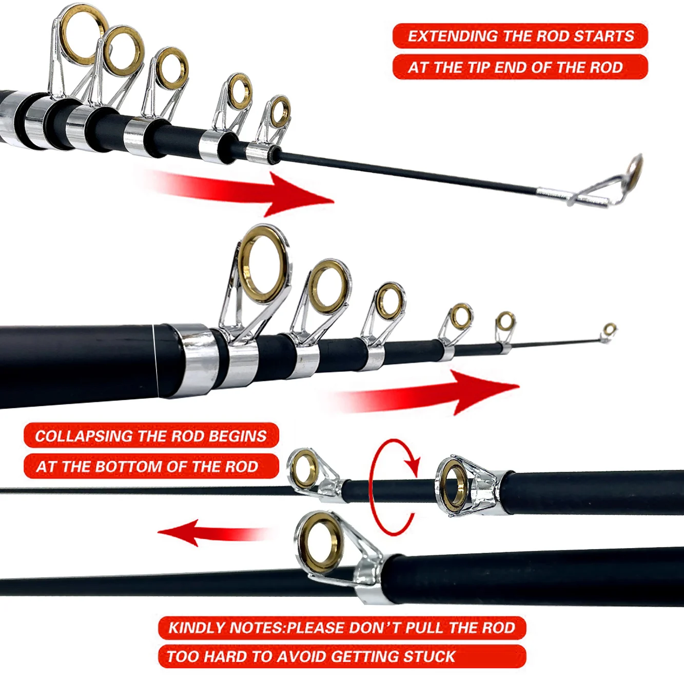 Телескопическая удочка из 99% Углеродного Волокна, 2,12,42,73,03,6 м