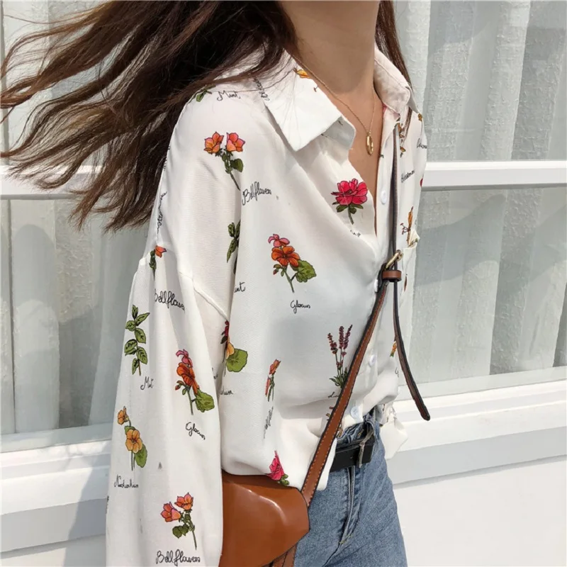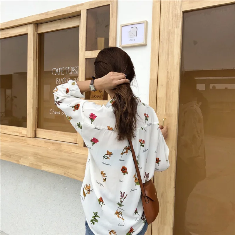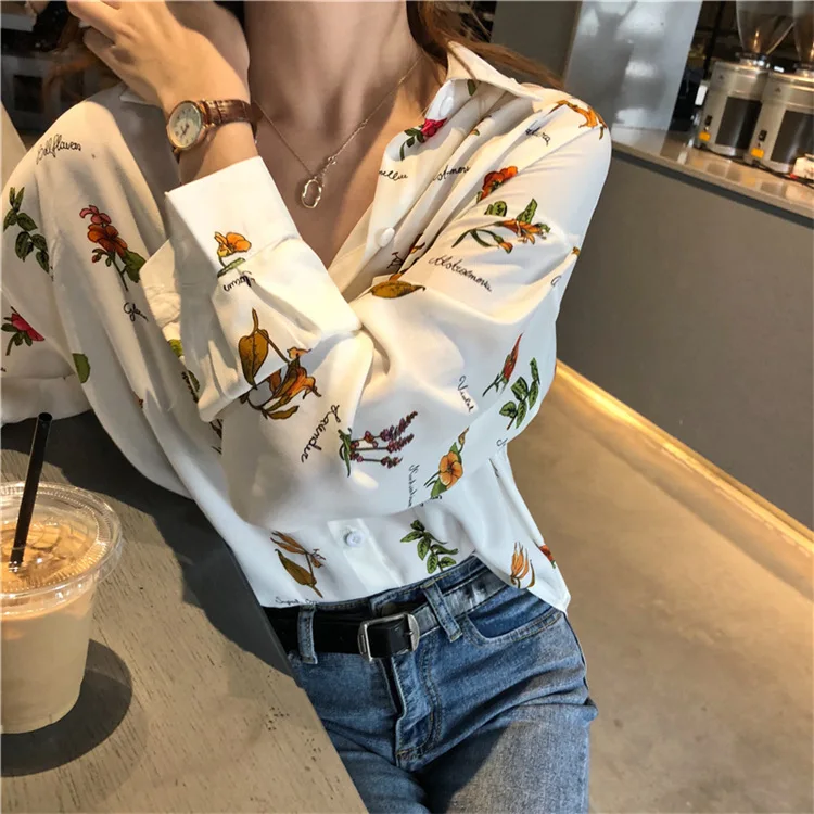 Женская шифоновая блузка с длинным рукавом, с цветочным принтом