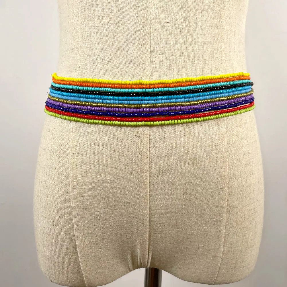 Женская цепочка на талию ручной работы, эластичная цепочка на талию в богемном стиле, летнее украшение для тела, разноцветный бисер