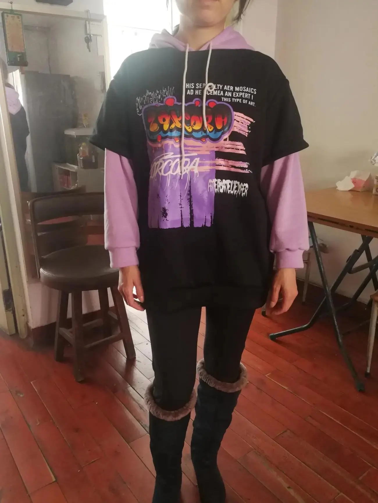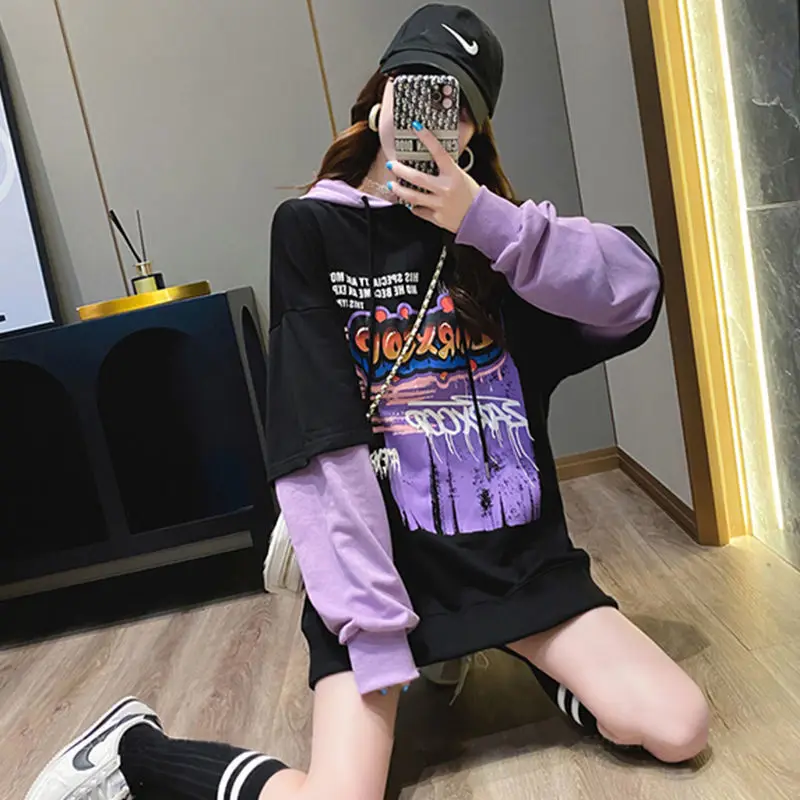 Толстовка Женская с длинным рукавом, аниме принтом и пэчворком