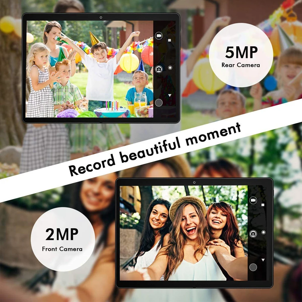 -> 2.5D Закаленное стекло 1280*800 IPS HD экран-> Визуальный угол, чтобы принести красочное и яркое изображение.-> Подарите потрясающее визуальное удовольствие.-> Две камеры AI 5.0MP + 2.0MP HD камеры
