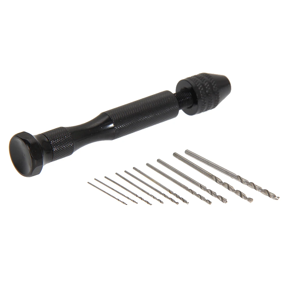 Деревообрабатывающие сверлильные вращающиеся инструменты ручное сверло из алюминиевого сплава микро ручное сверло для ювелирных изделийХарактеристика:1. Хобби используется для алюминиевых ручных дрелей2. Мини Деревянный ручной сверлильный патрон подходит для легкого скручивания ювелирных инструментов3. Точный, точный и эффективный4. Подходит для сверления дерева, пластика, резины, моделей и других материалов.5. Не устанавливайте твердые предметы, такие как сталь или камень6. Подходит для сверления дерева, алмаза, липы, рога, янтаря, оливкового, грецкого ореха, пластика и других материалов.Спецификация:Материал: алюминиевый сплавЦвет: черныйДиапазон зажима патрона: 0,3-3,2 ммВысокая точность, 0,3-3,2 мм сверло может быть зажаты.Тип:A: 1 сверлоB: 1 сверло, 10 мини сверлПримечание:В связи с различиями мониторов и эффектами освещения реальный цвет товара может немного отличаться от цвета на фотографиях. Спасибо!Возможны незначительные отклонения в измерениях из-за ручного измерения.