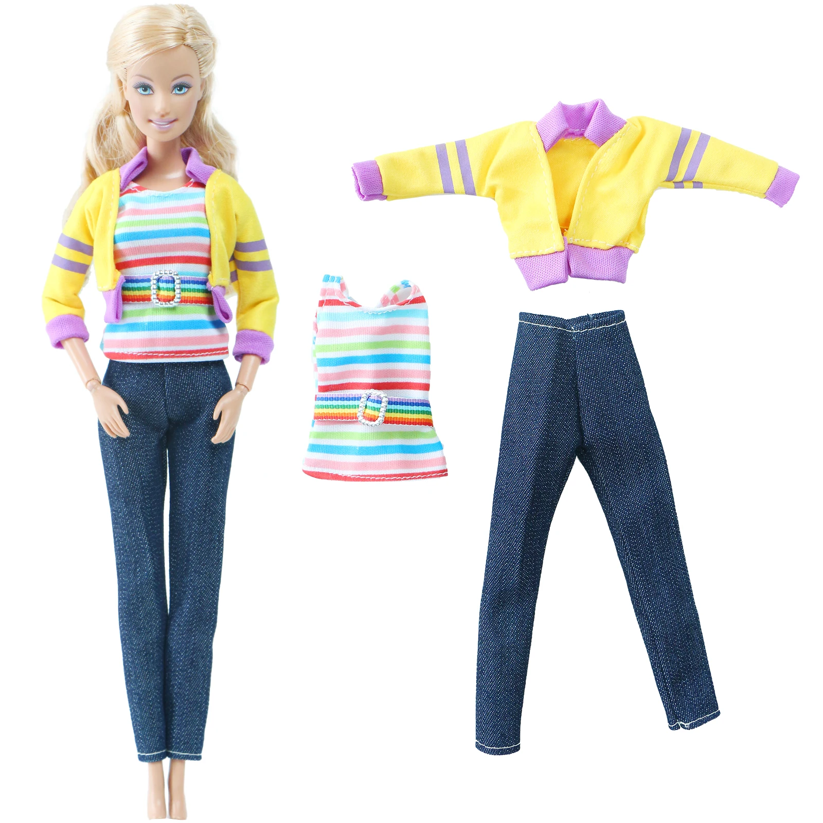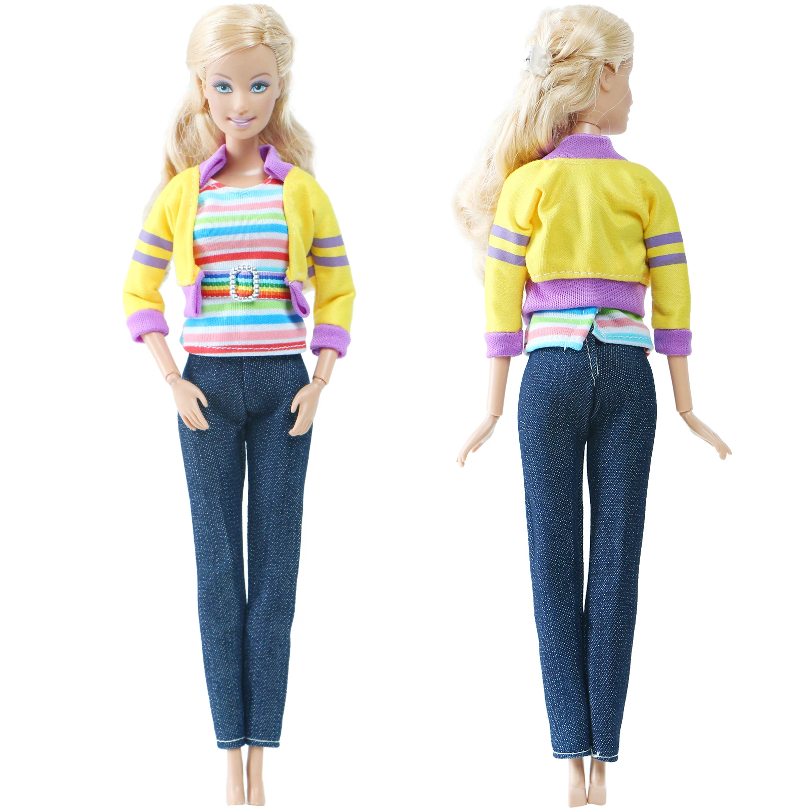 1 комплект одежды для куклы BJDBUS, желтая куртка, жилет, брюки, повседневная одежда, модный дизайн одежды для куклы Барби, аксессуары, игрушки