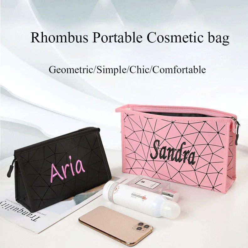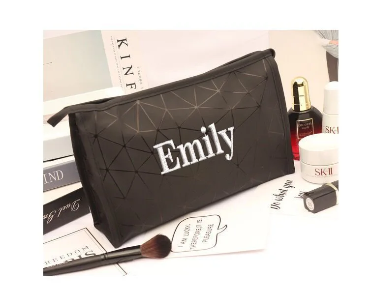 Индивидуальная косметичка из искусственной кожи в форме алмаза, водонепроницаемая и Пыленепроницаемая косметичка, индивидуальная косметичка с вышивкой, большая емкость