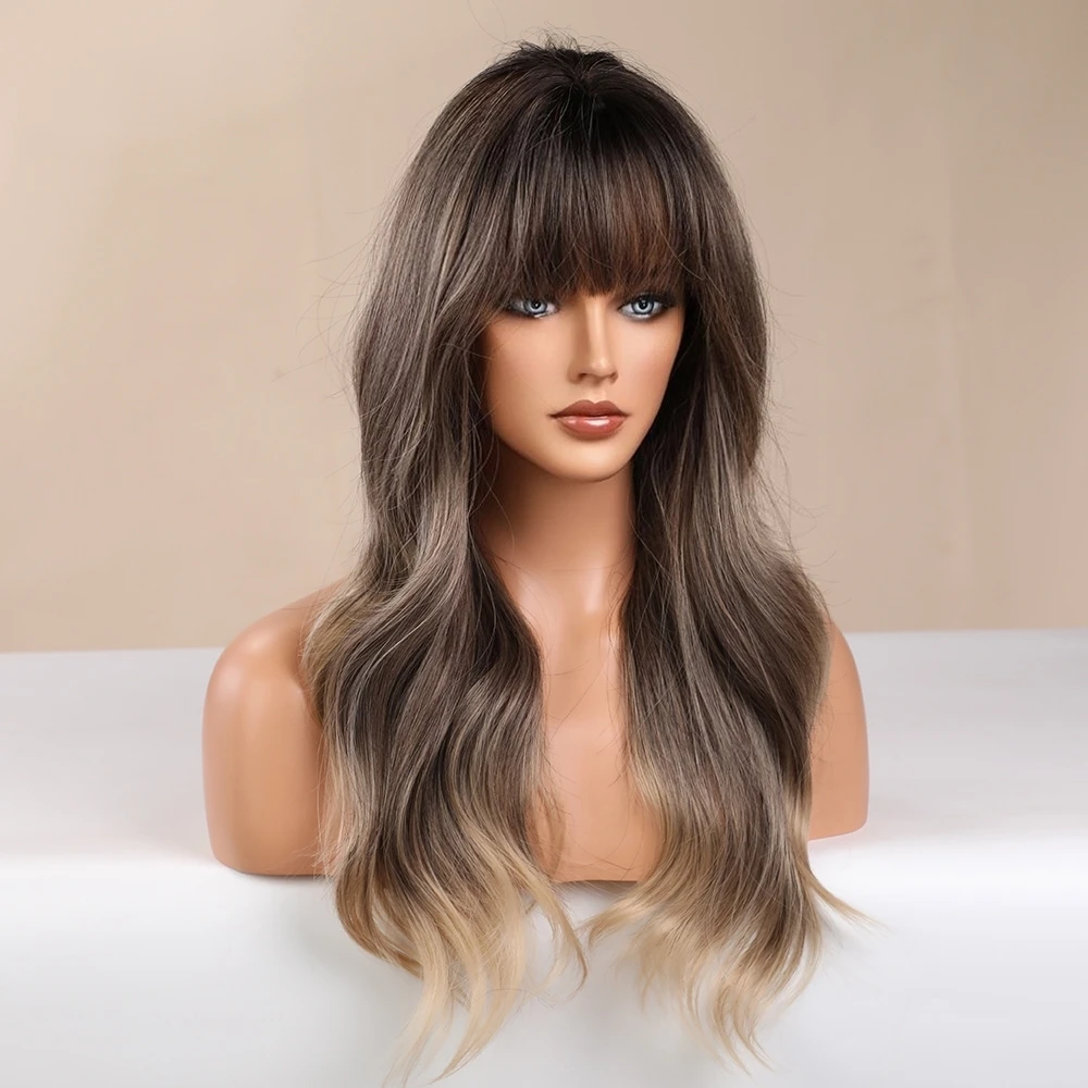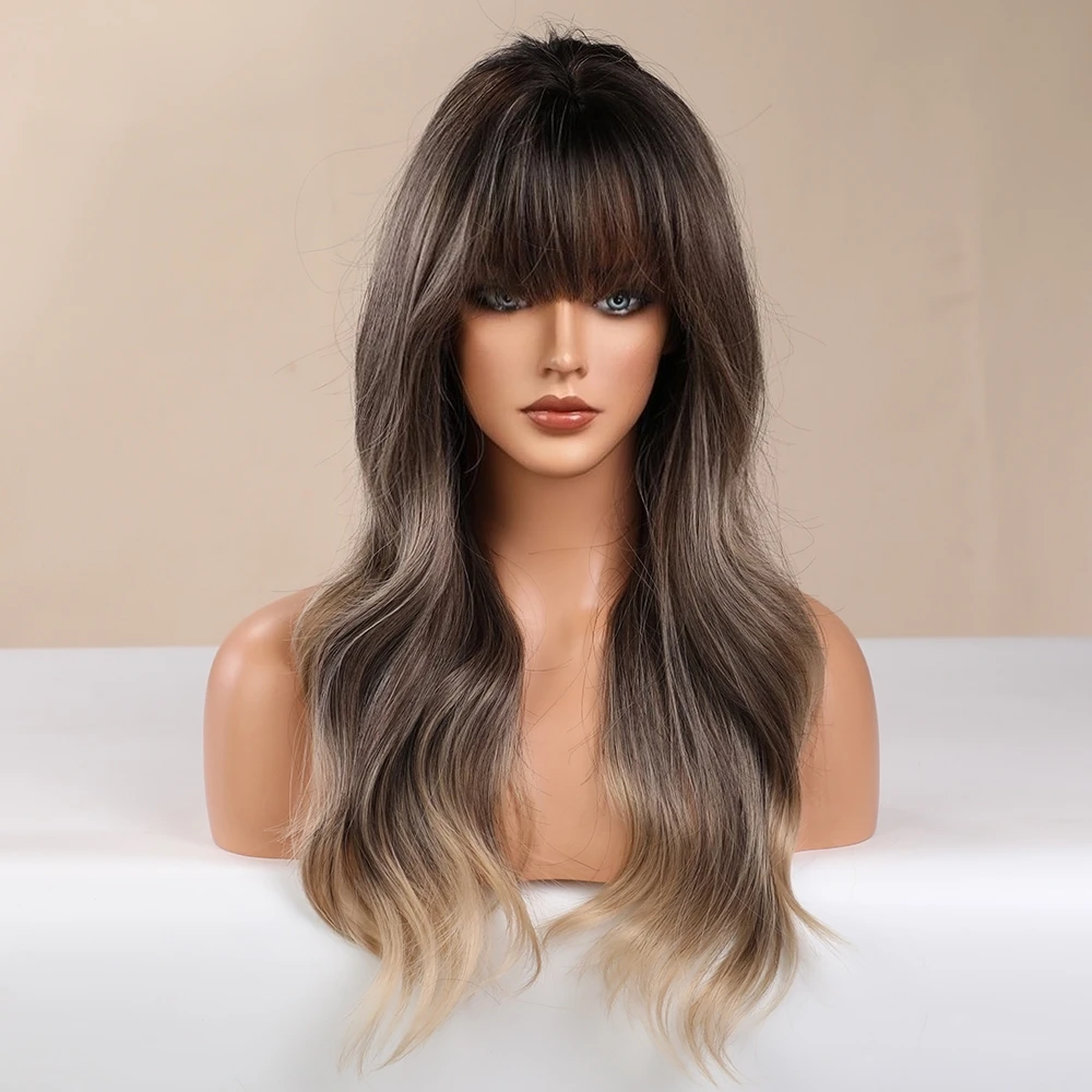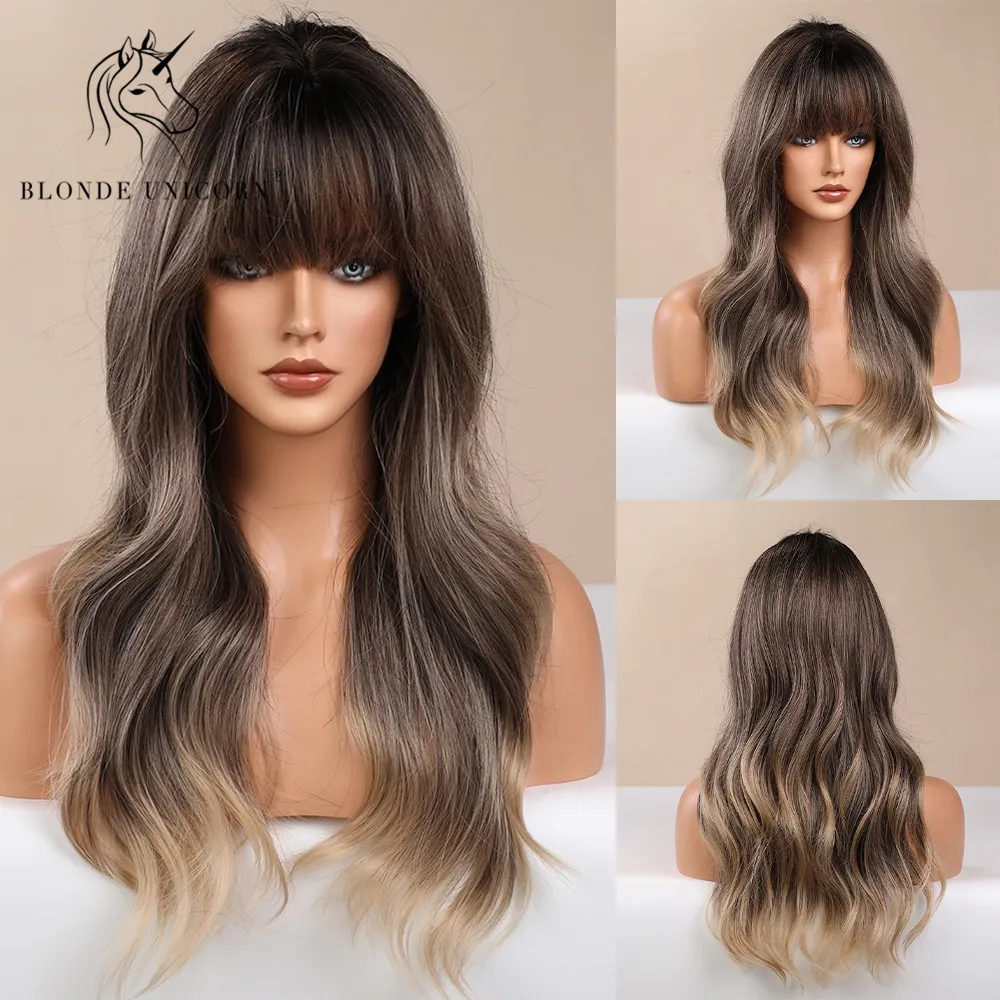 Длинные волнистые синтетические волосы блонд Единорог парики Омбре блонд коричневый с челкой для черных белых женщин термостойкие волоконные повседневные парики