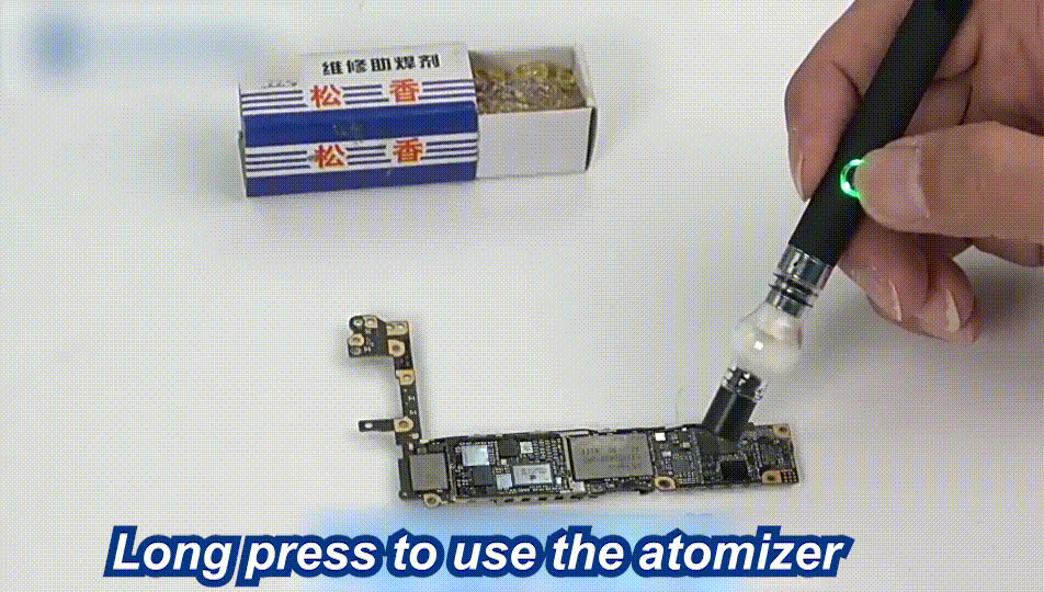 3. Нажмите на выключатель пять раз быстро, и после того, как светильник индикатора вспыхивает, запустите блок канифоли, распыляющий ручку.