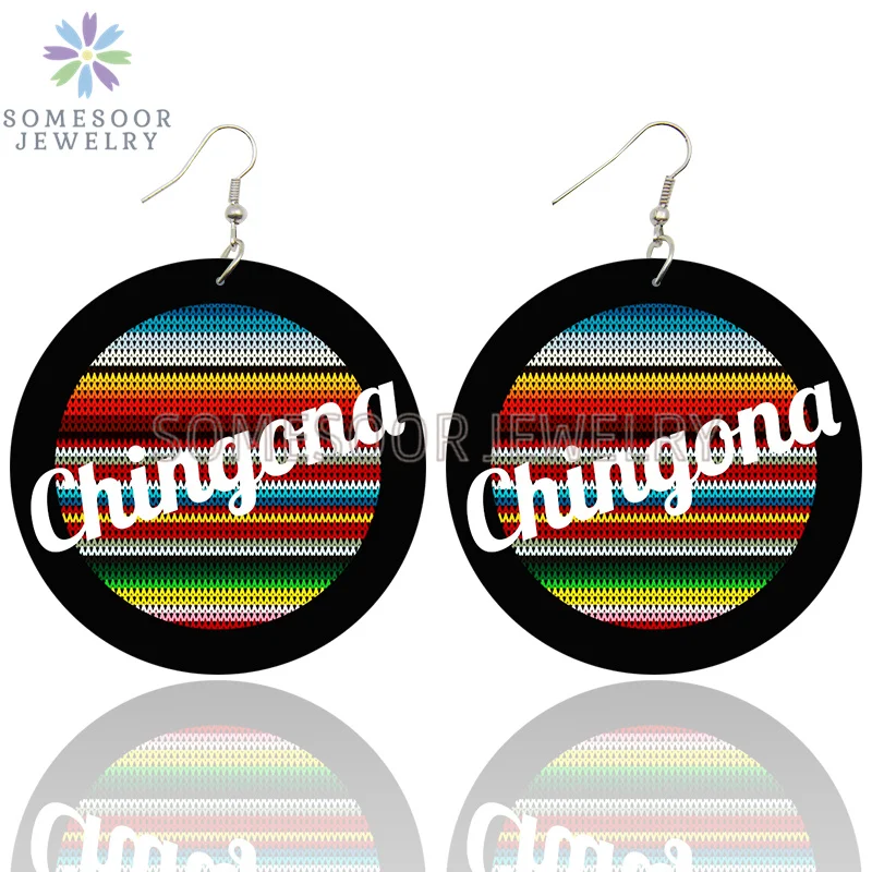 SOMESOOR Chingona Латина афро-американские деревянные висячие серьги богемный этнический дизайн печать петли Висячие ювелирные изделия для женщин Подарки