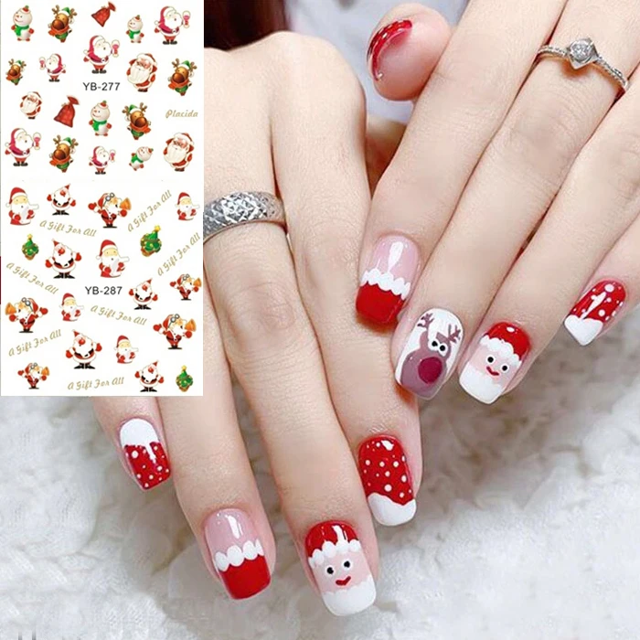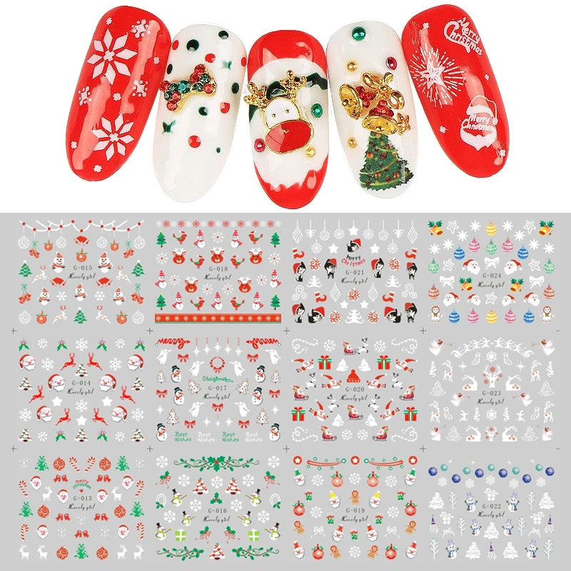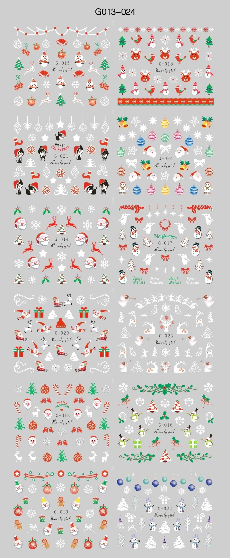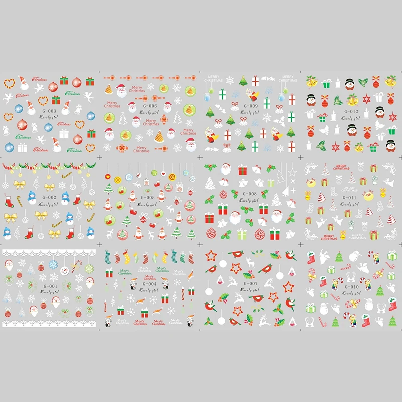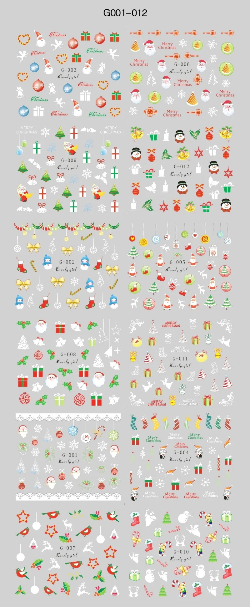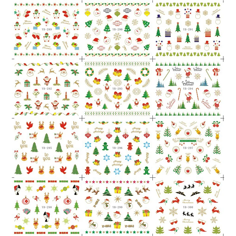 Наклейки для ногтей 12 листов с рисунком Санта-Клауса, лося, снегов...