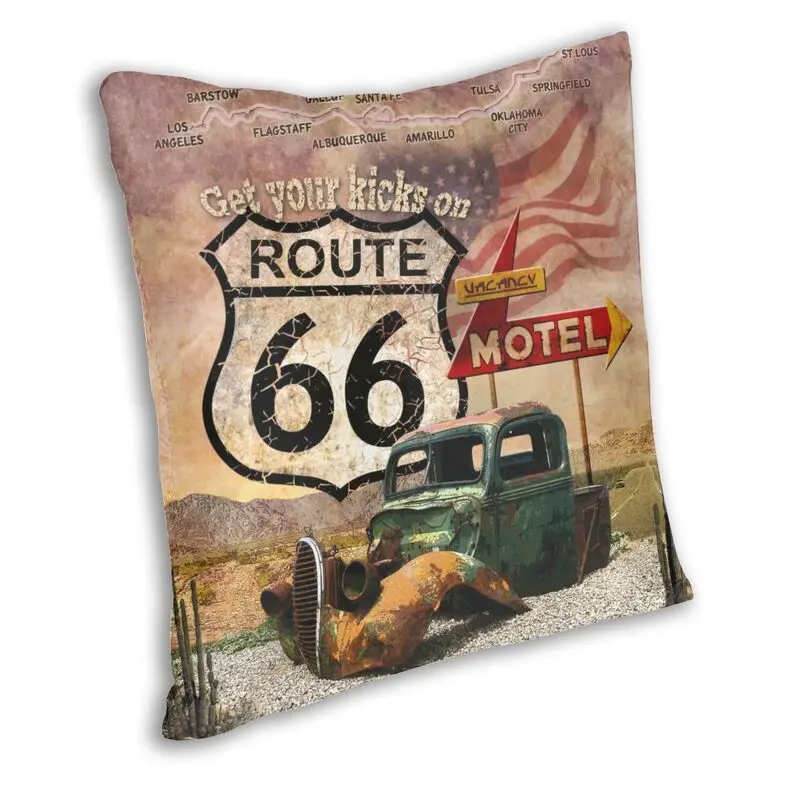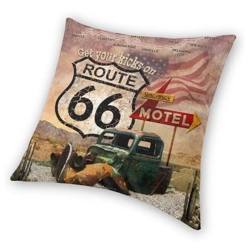 Квадратная наволочка для подушки Get Your Kicks On Route 66, домашние декоративные подушки для шоссе США, декоративная подушка для автомобиля, двусторонняя печать