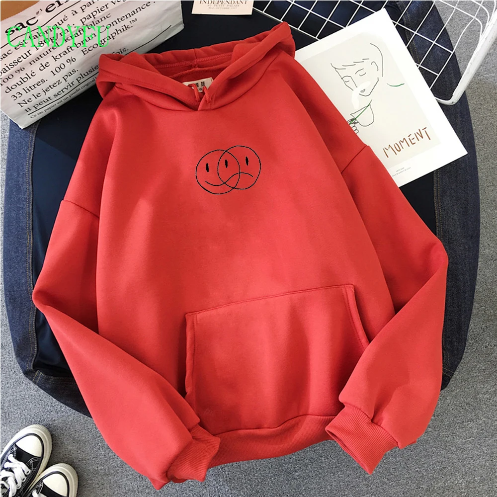 Китайские толстовки, женская уличная одежда, Повседневный пуловер в стиле хип-хоп с длинным рукавом, спортивный свитер, линейная толстовка с рисунком улыбки и грустного лица