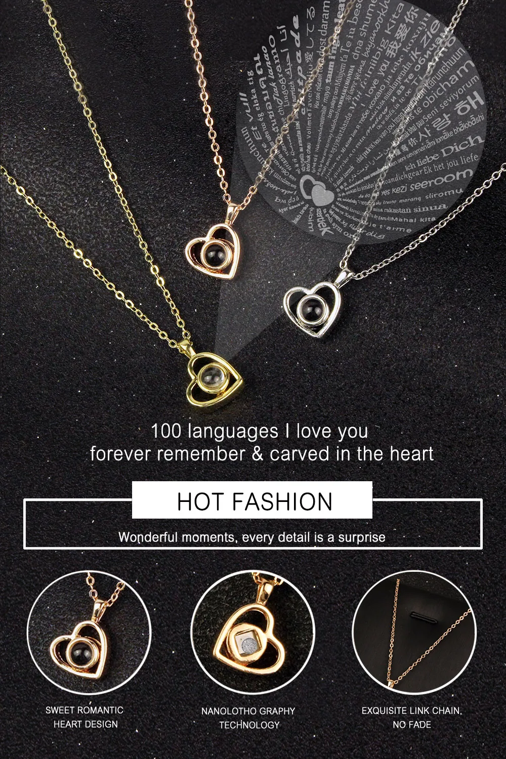 Чокер для влюбленных, с изображением имени на заказ, ожерелье с кулоном в форме сердца, 100 языков, с надписью Я тебя люблю, подарок на день Святого Валентина