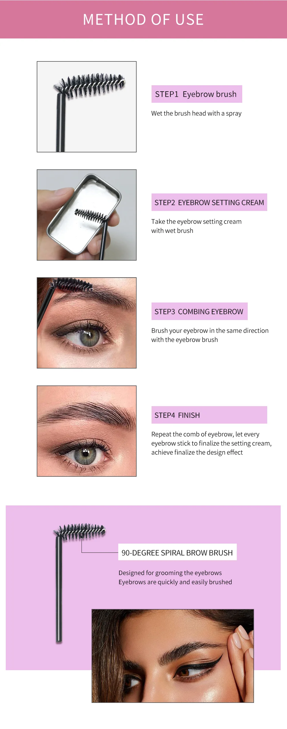 * Распылите воду на кисть или мыло, окуните мягкий конец кисти в крем и аккуратно подметайте его на брови.* Затем разверните брови в противоположном направлении формы бровей с помощью другого конца кисти.* Используйте Карандаш для бровей или помаду для бровей, чтобы заполнить брови; Наконец, используйте консилер для глаз, чтобы скрыть дефект части, тогда вы получите естественный Пернатый вид бровей!
