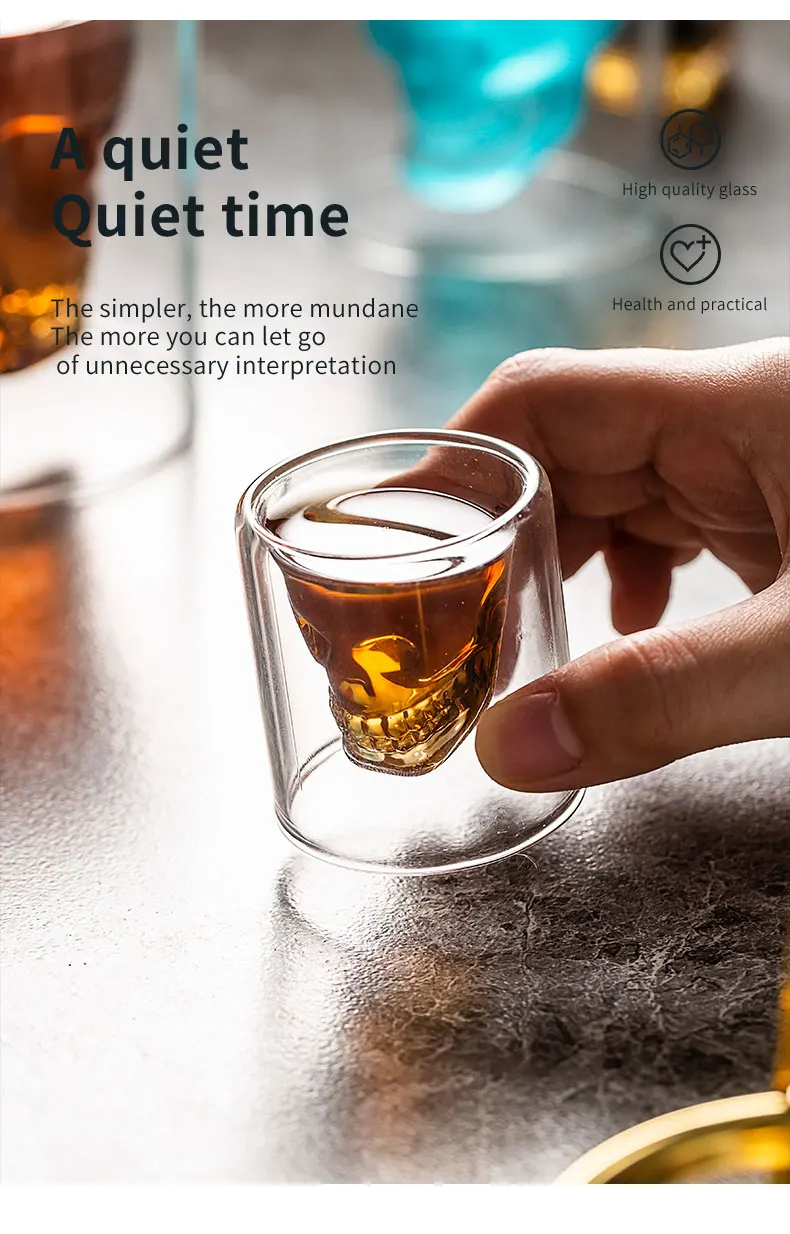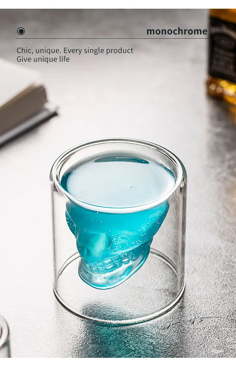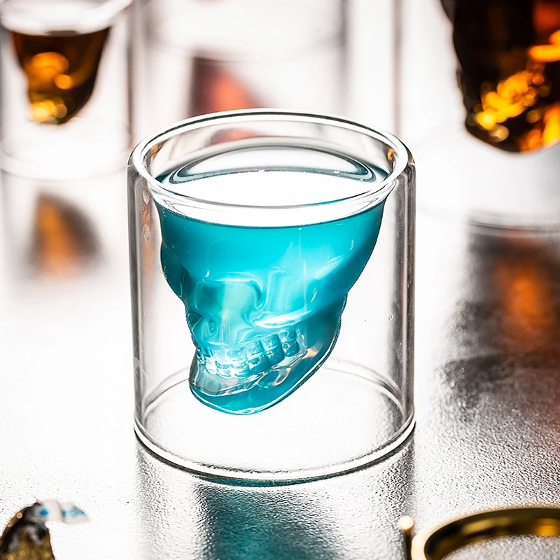 Новый двойной прозрачная стеклянная чашка Череп вино молоко виски ч...