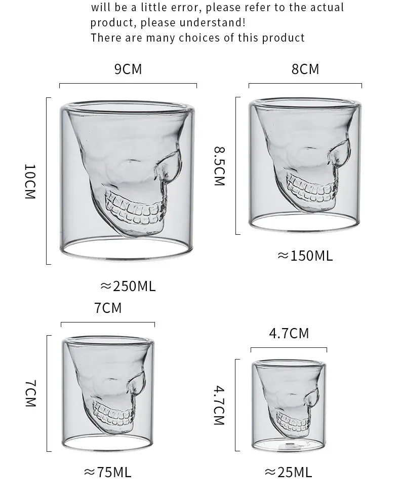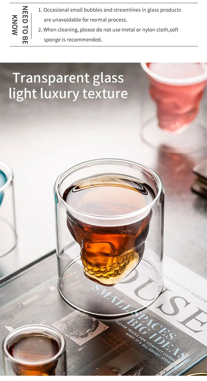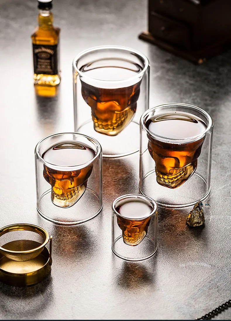 4 шт. череп Набор Винных Бокалов двойной прозрачное стекло пива для...