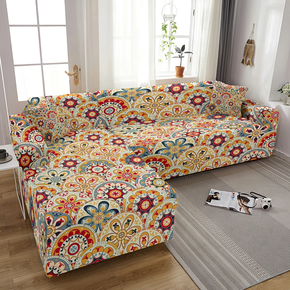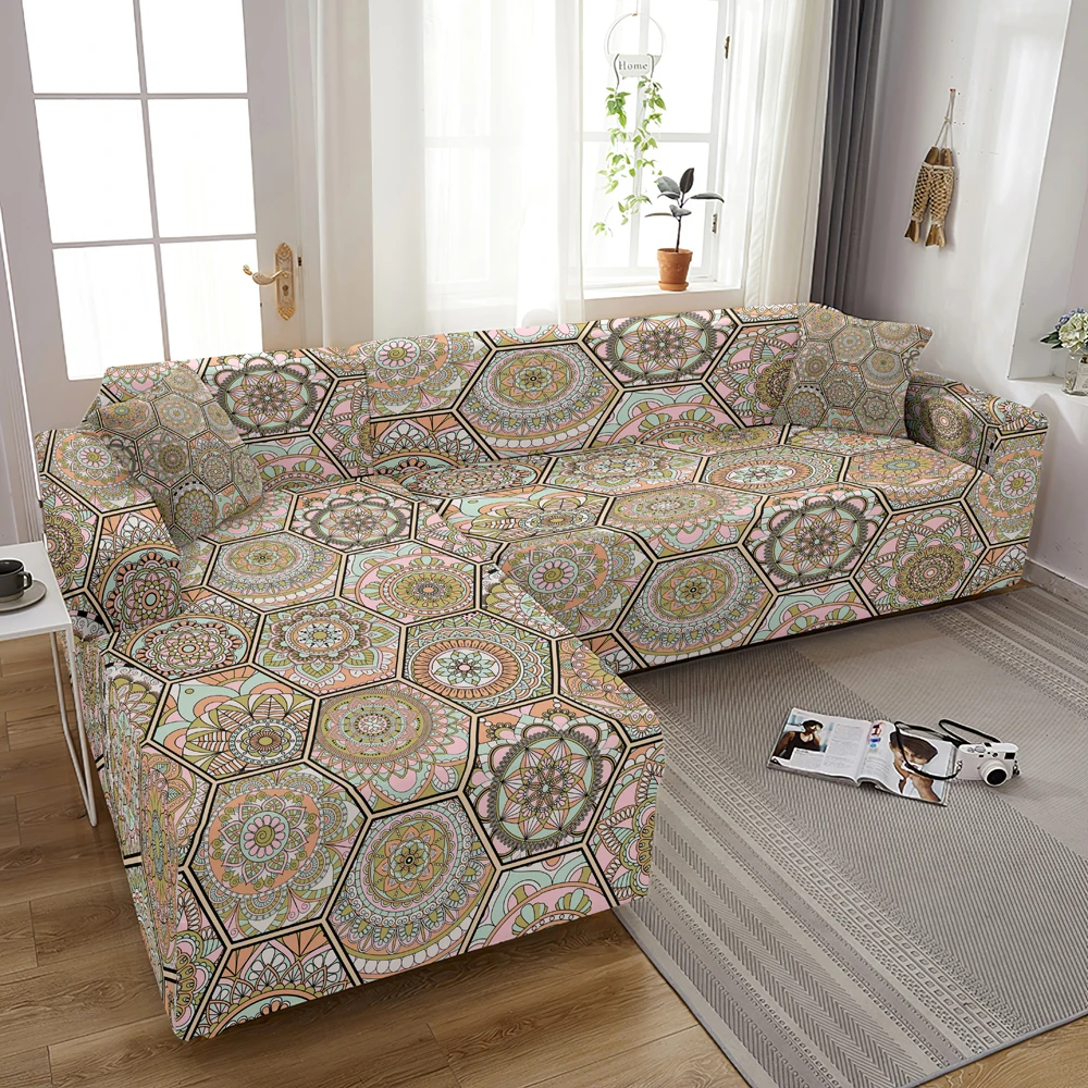 Чехлы для дивана с 3D мандалой для гостиной, чехлы для дивана в богемном стиле, секционный L-образный чехол для углового дивана, эластичный чехол для дивана